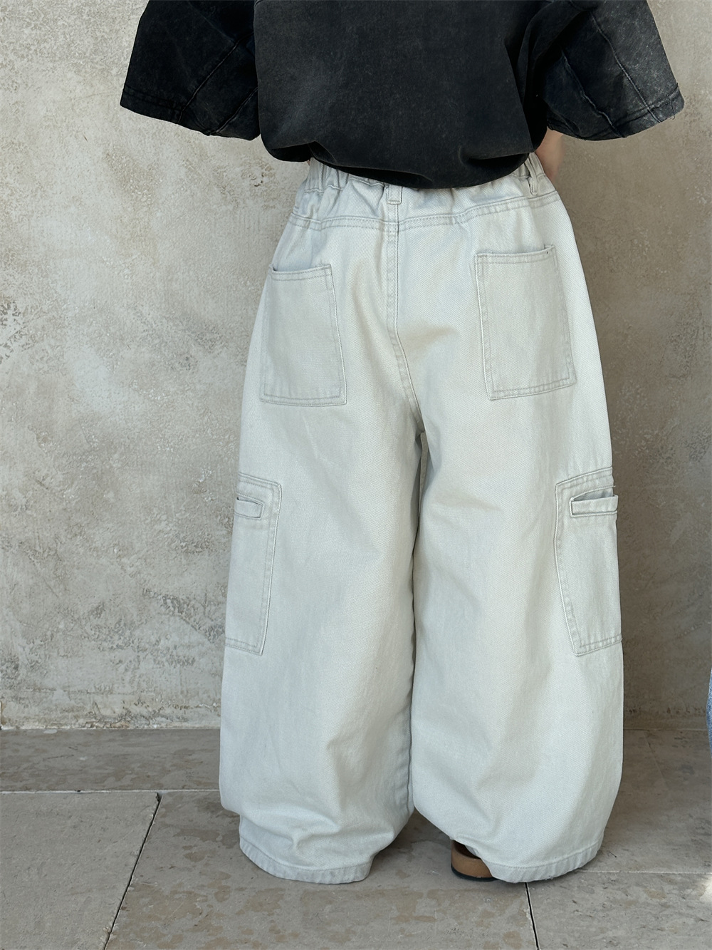 【90-150cm】カジュアルパンツ ストレート ゆったり ウォッシュド ロングパンツ