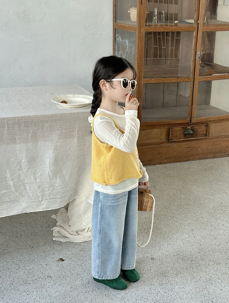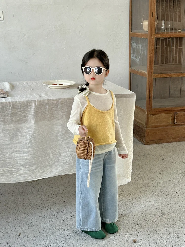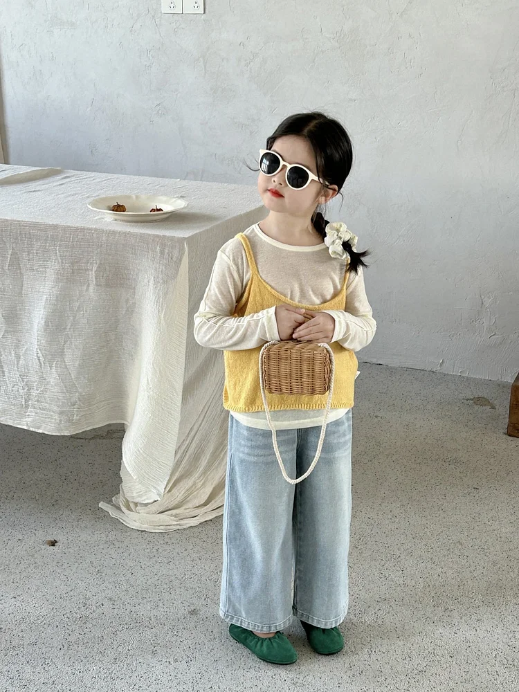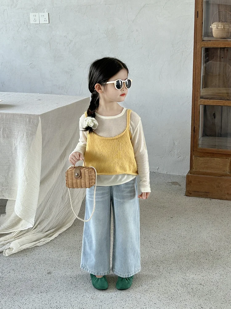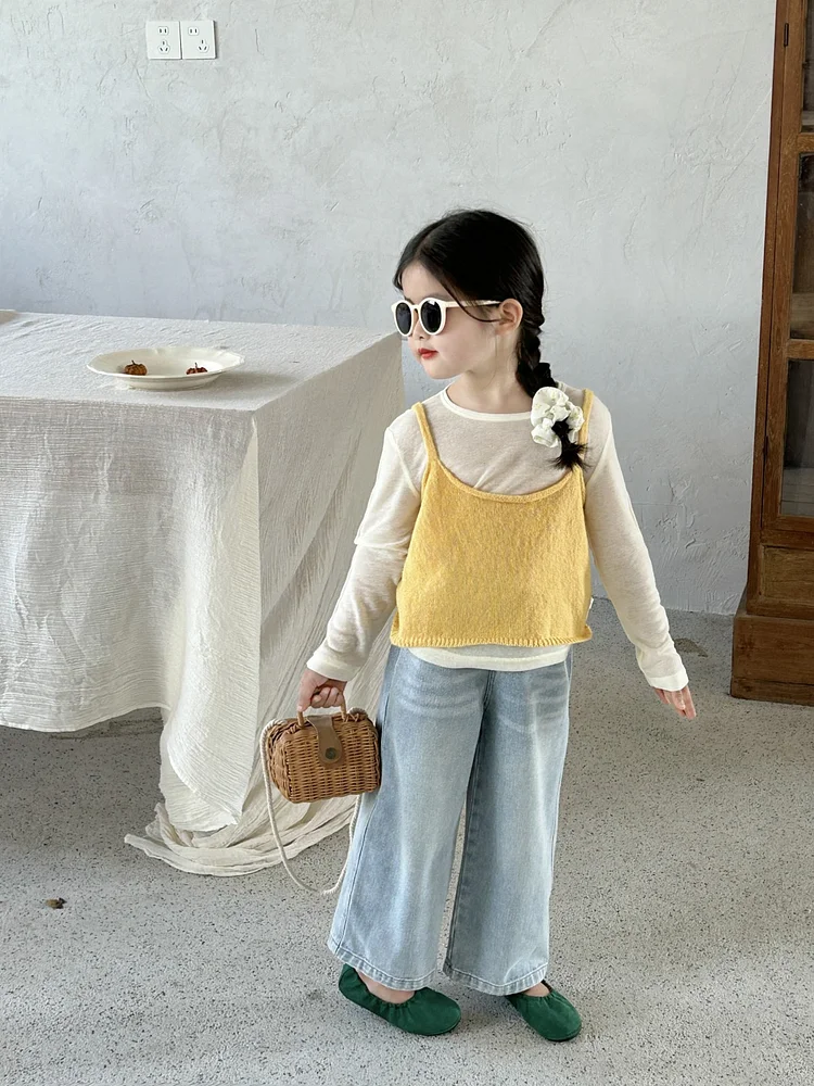 【90-140cm】 イエローキャミORデニム パンツ ORベージュ トップス