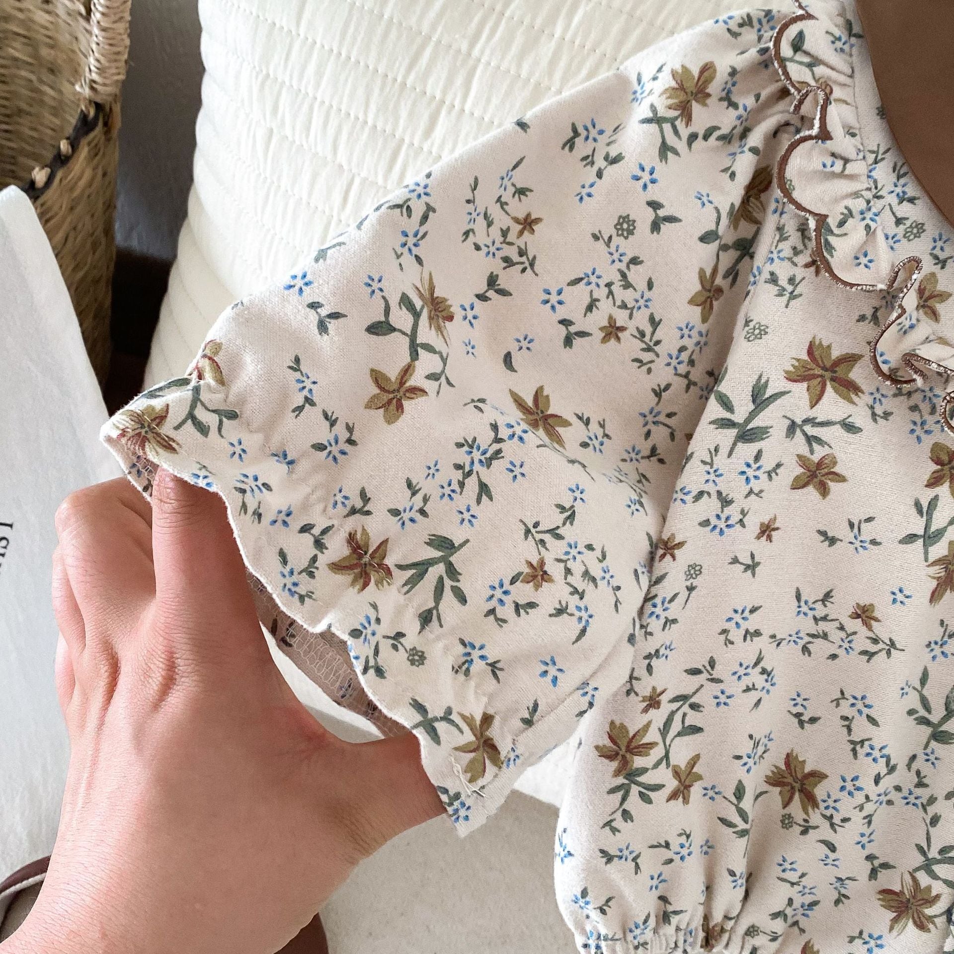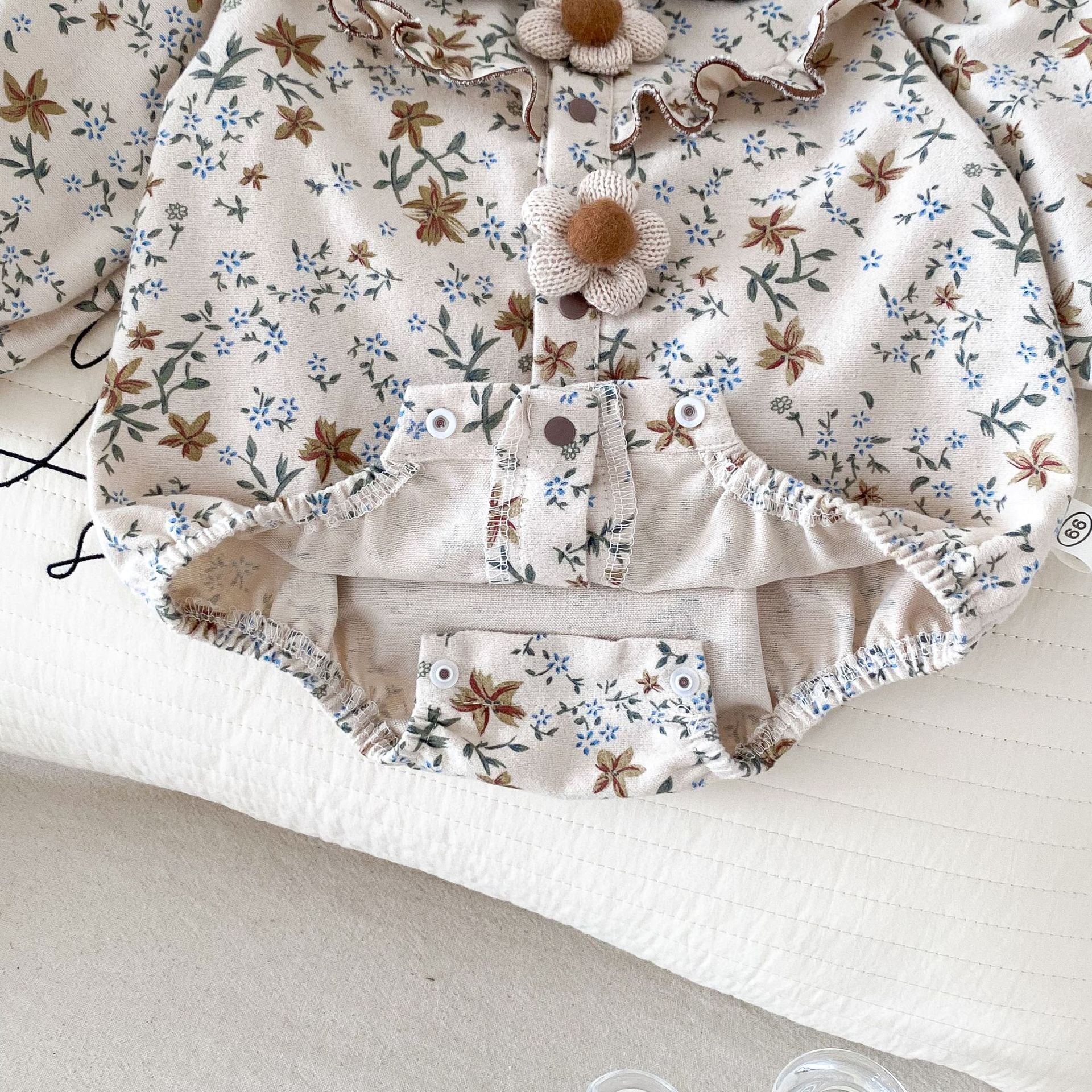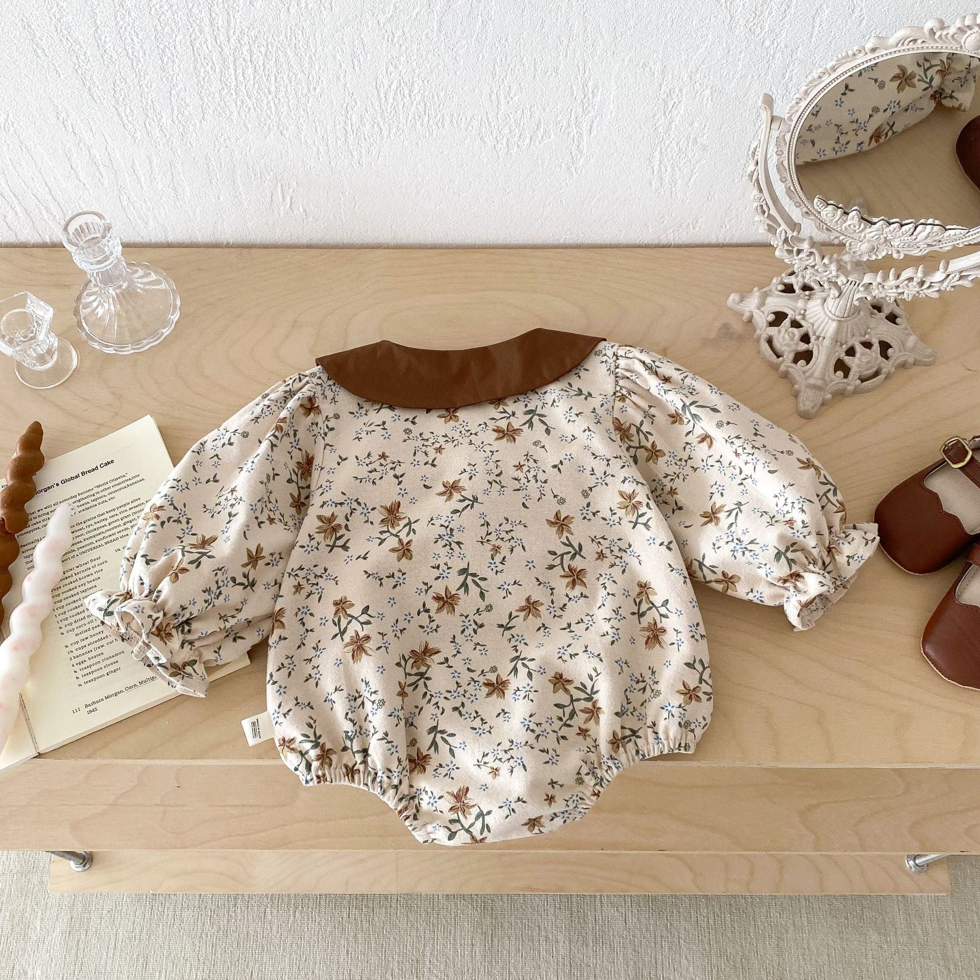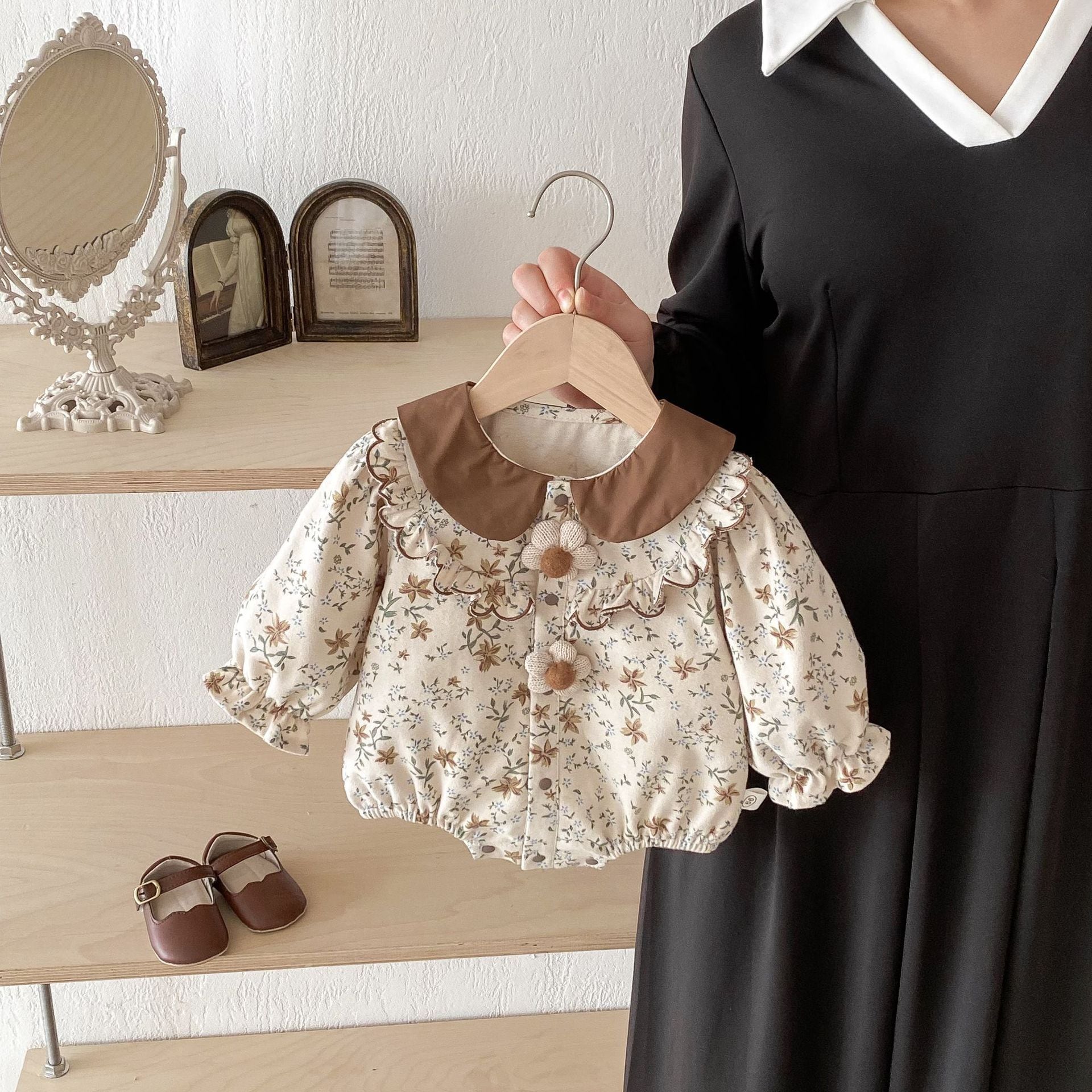 【66-90cm】ロンパース ブラウン花 可愛い 肌に優しい ベビー服