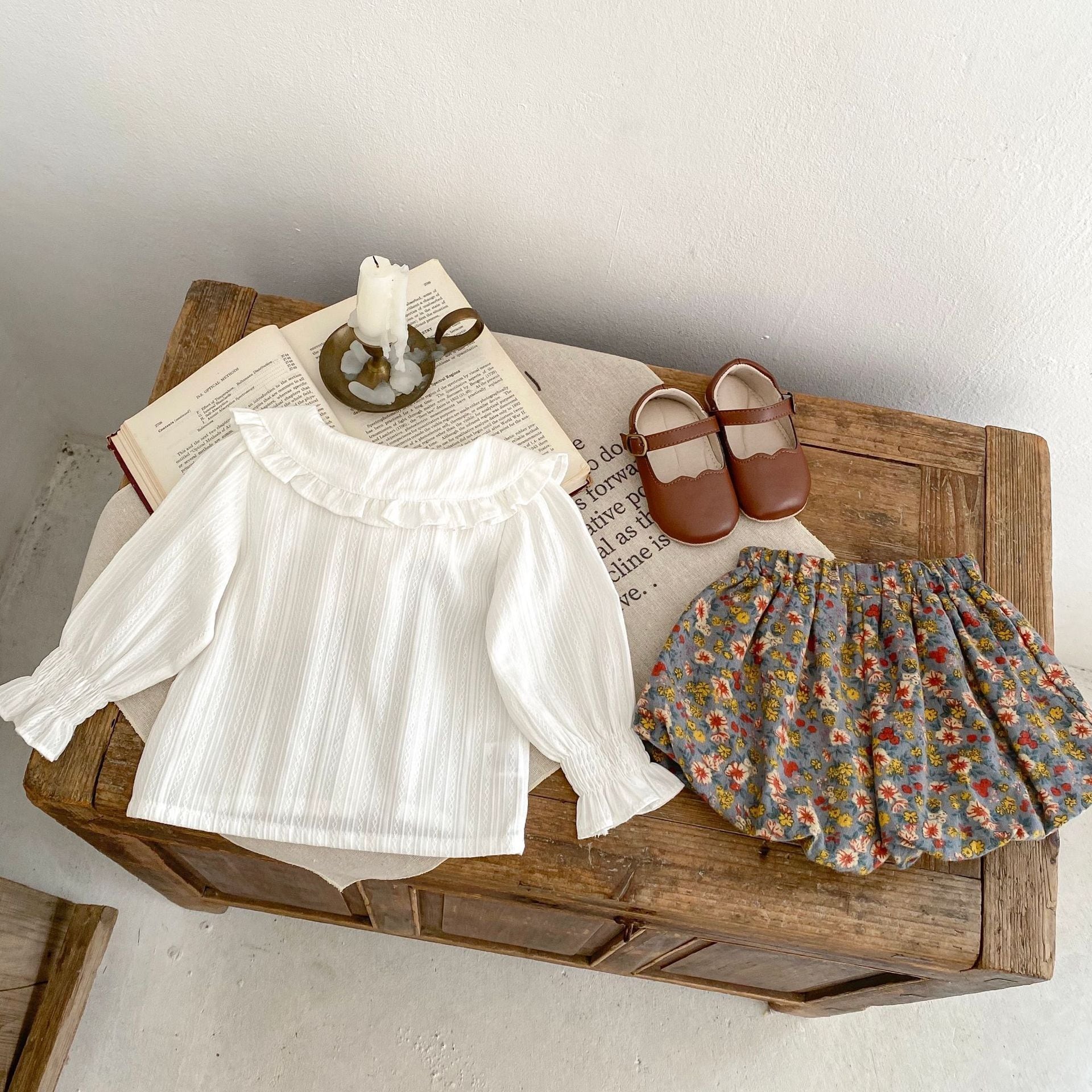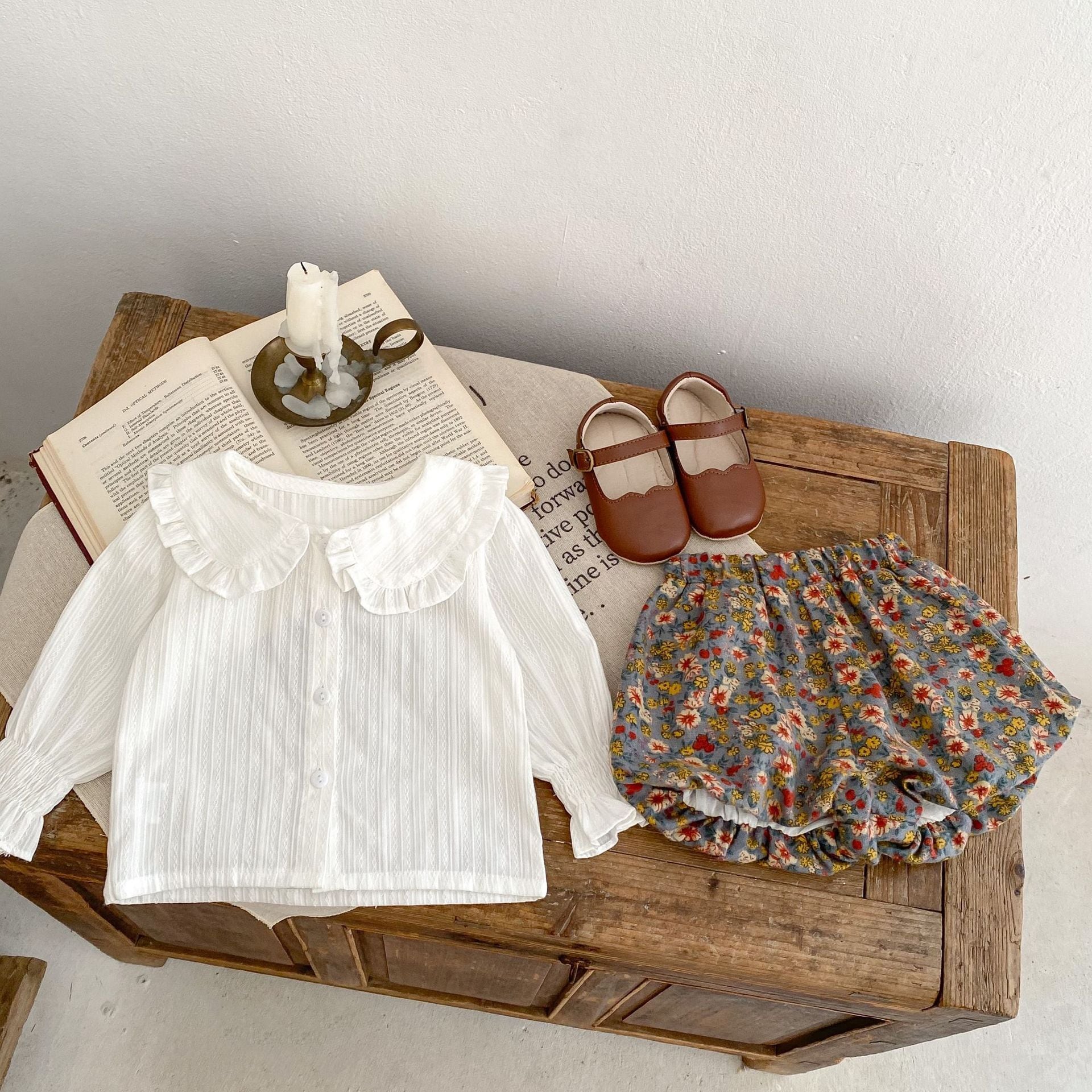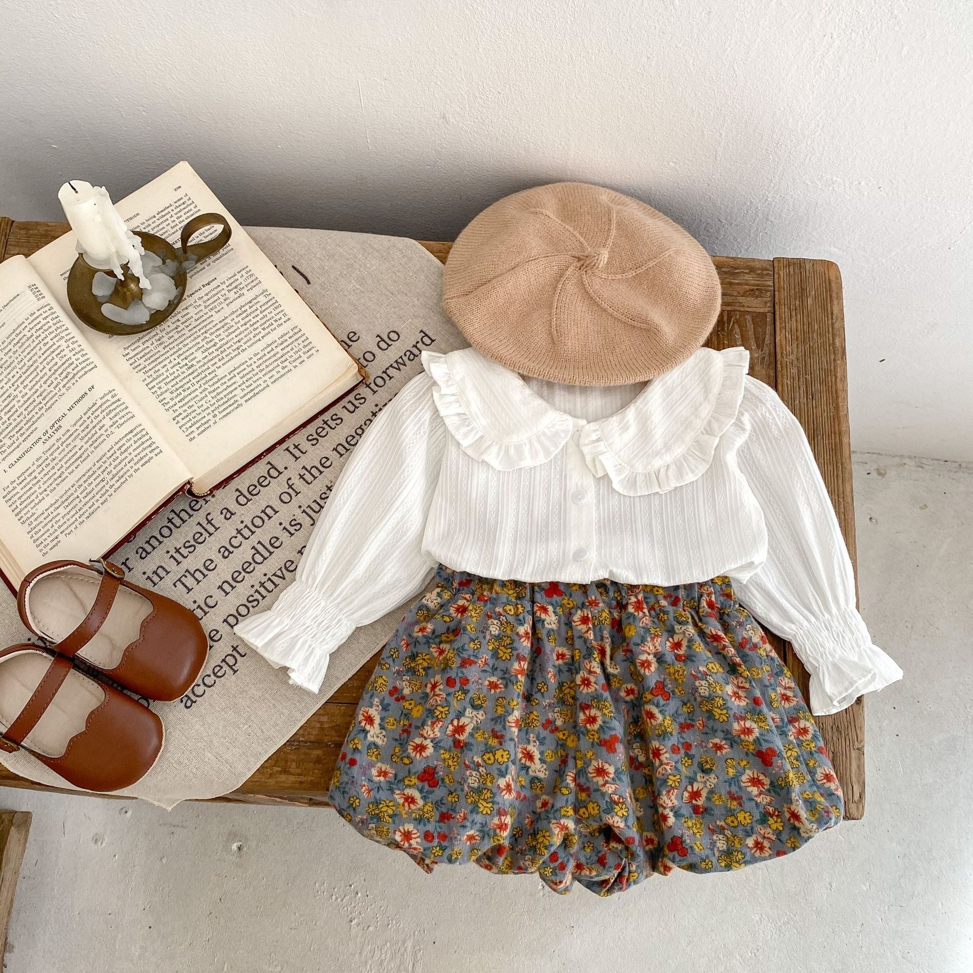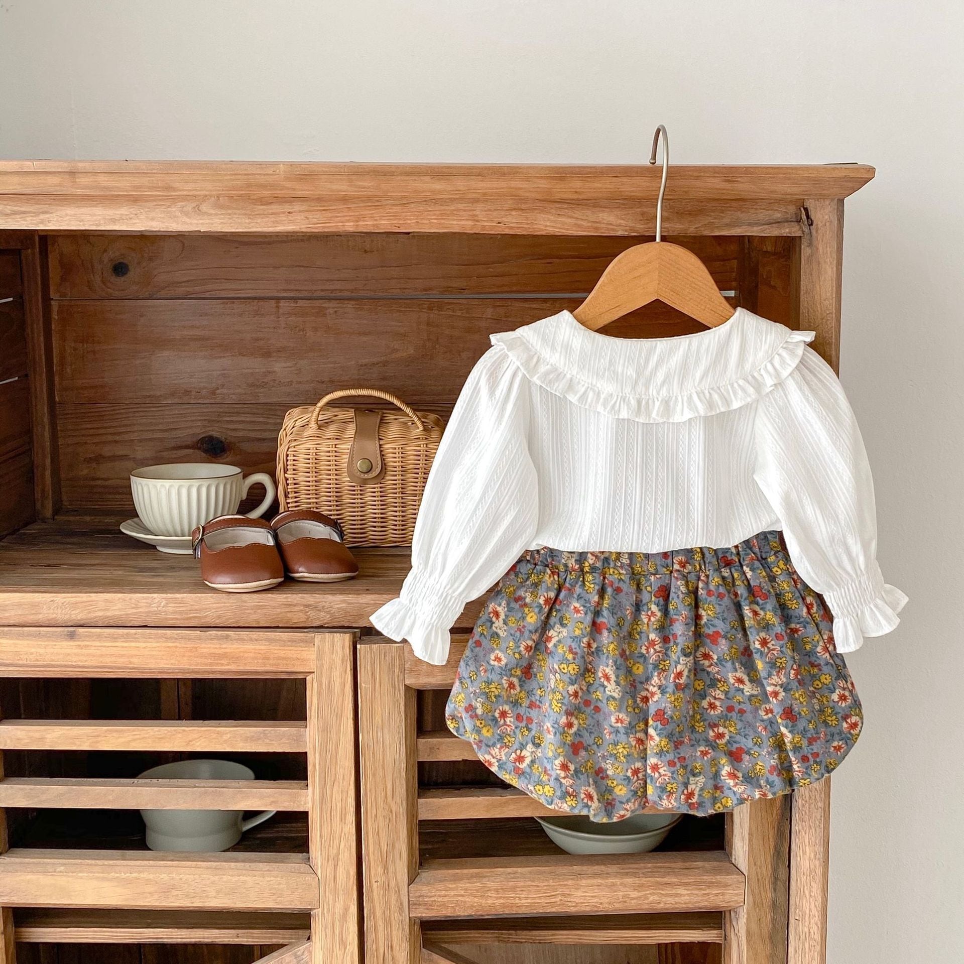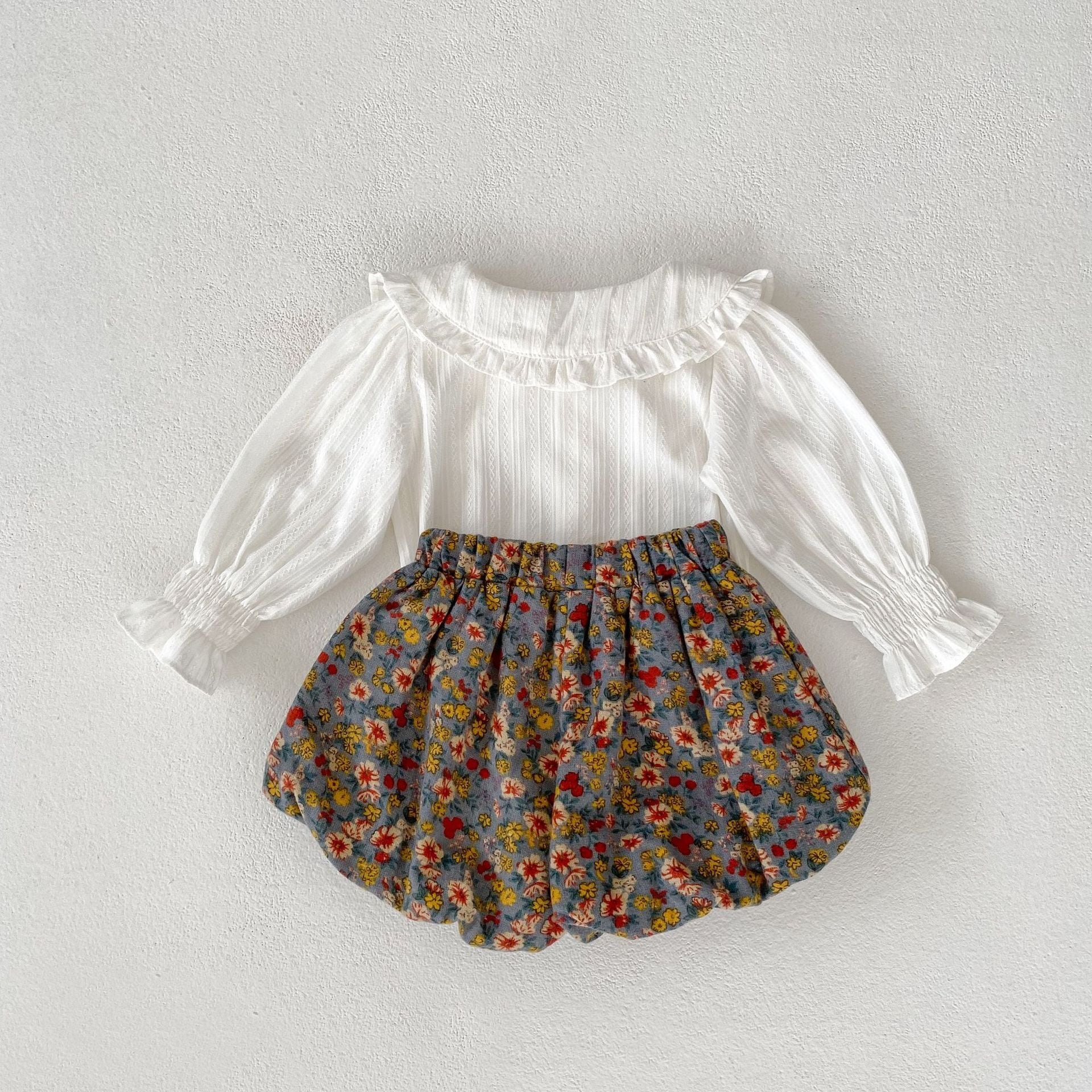 【66-100cm】二点セット ホワイト ブラウス&花柄 ブルマ セットアップ