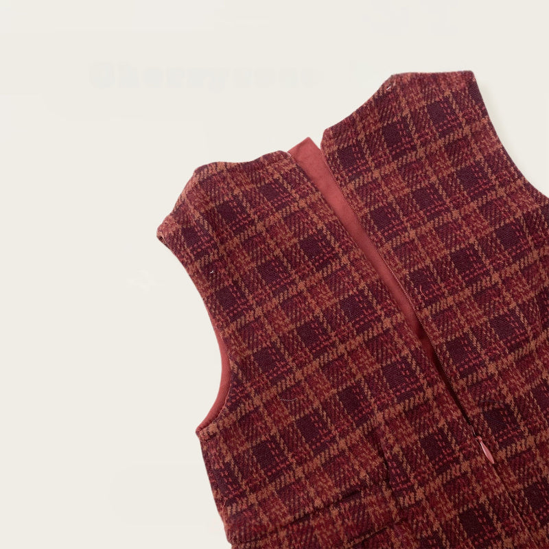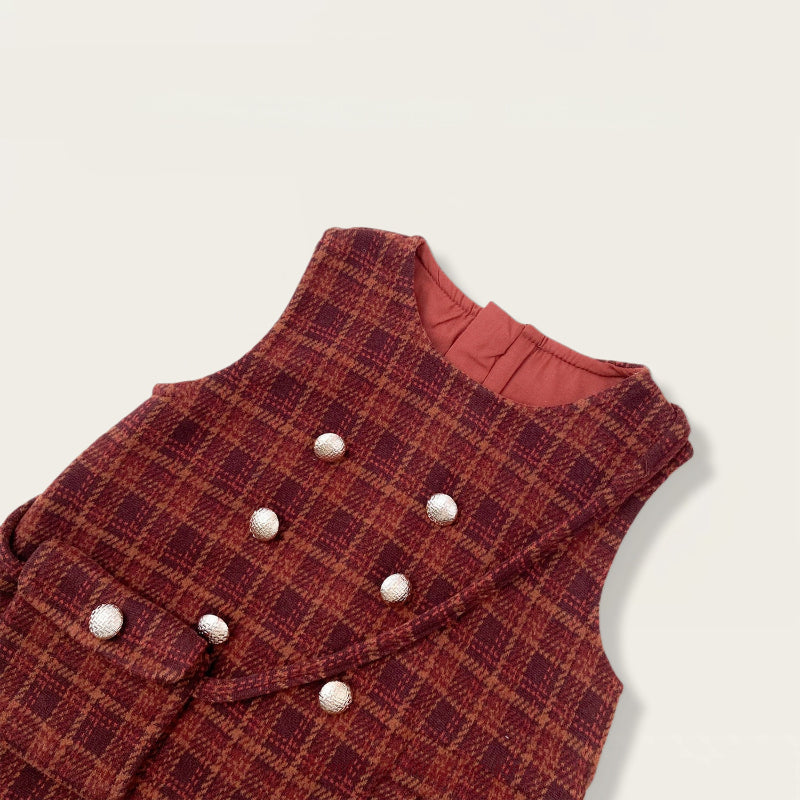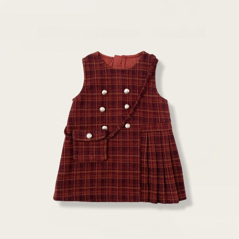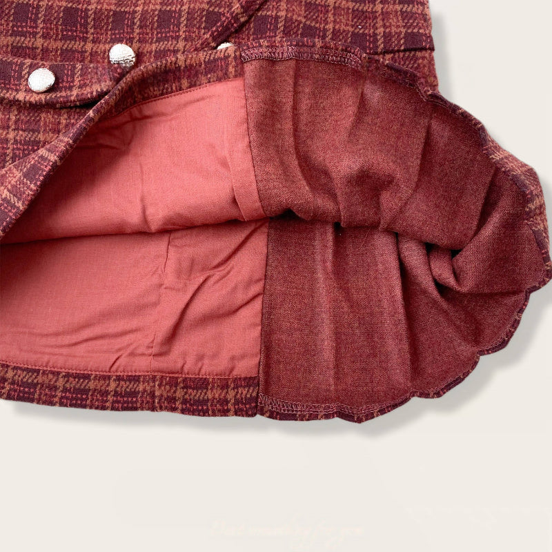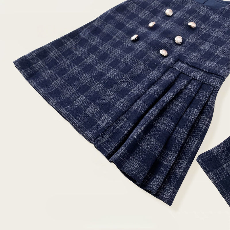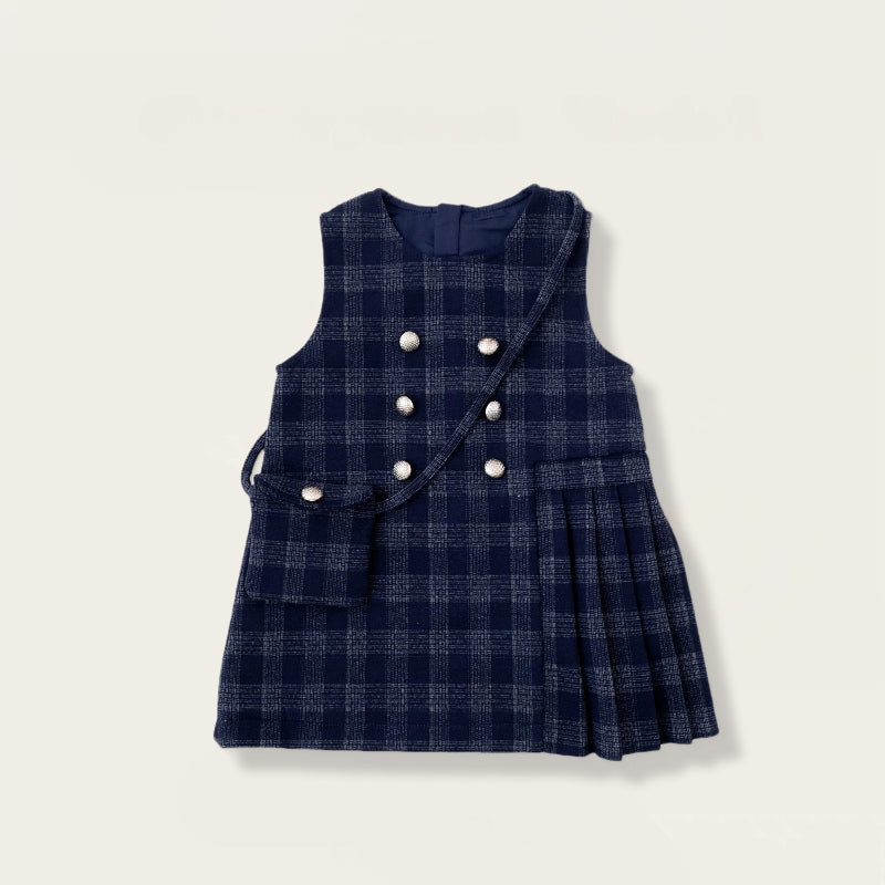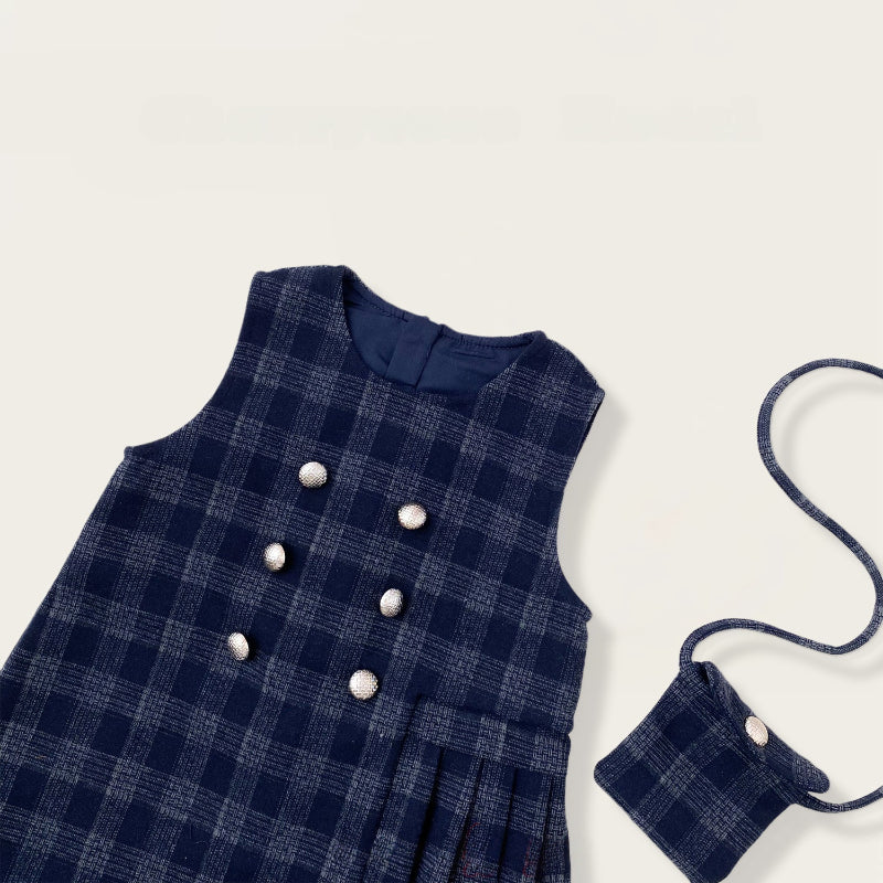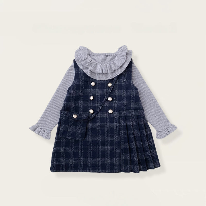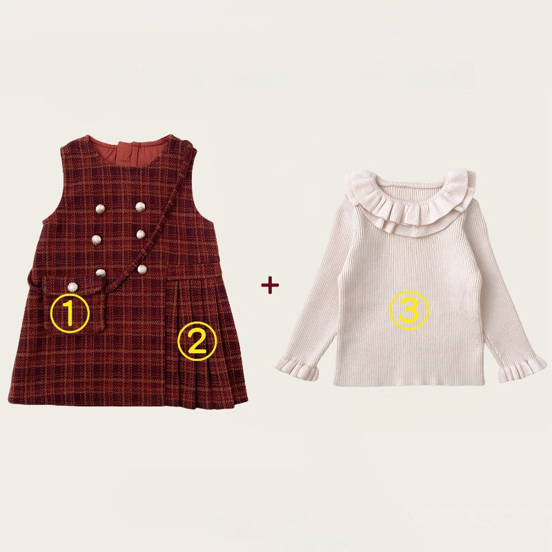 【80-140cm】 チェックジャンパースカート&フリルニット&バッグ3点セット