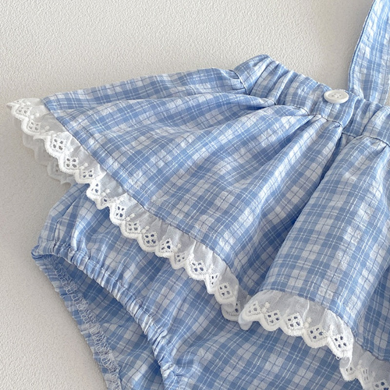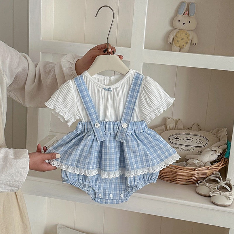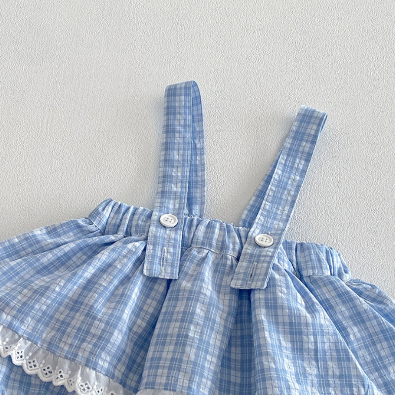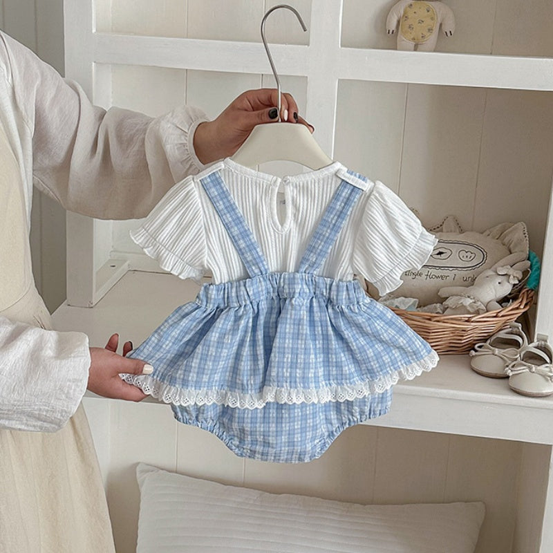 【66-90cm】セットアップ サロペットロンパース&リブTシャツ ベビー 女の子 チェック柄
