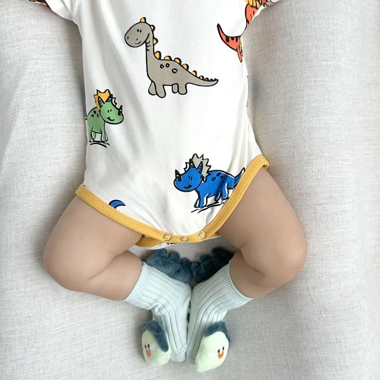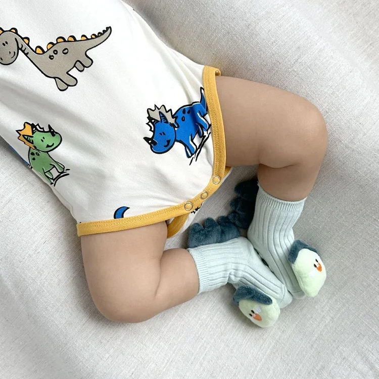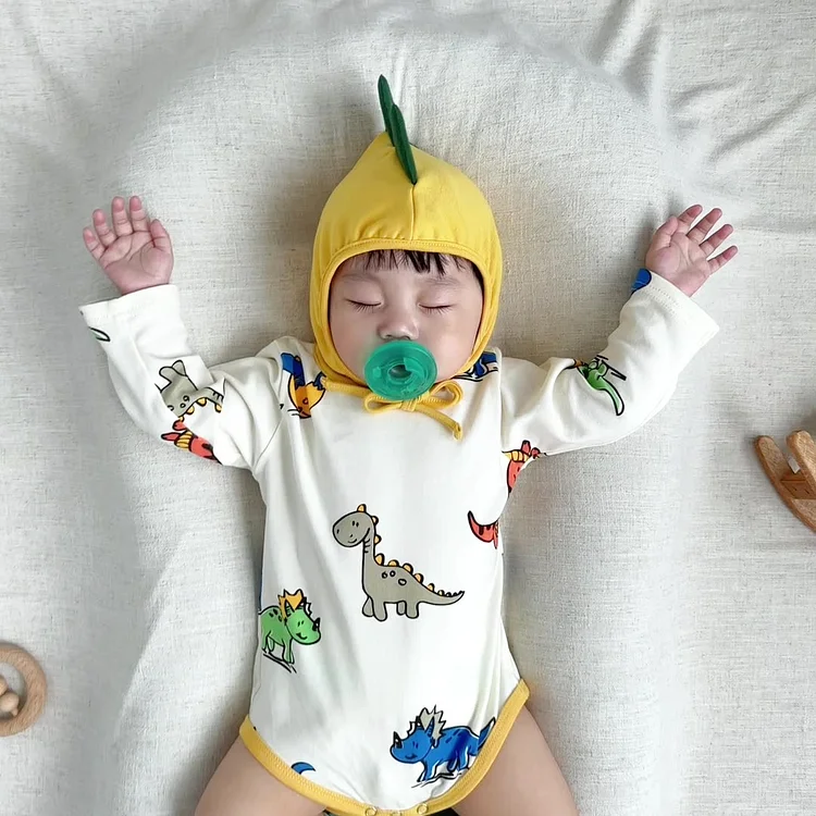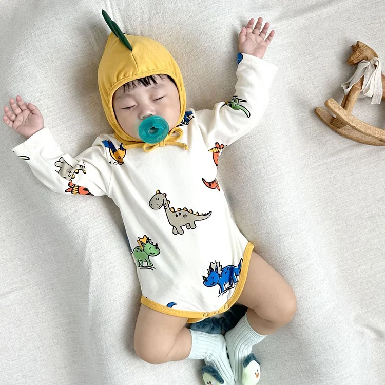 【66-90cm】 帽子付き 恐竜プリント ロンパース