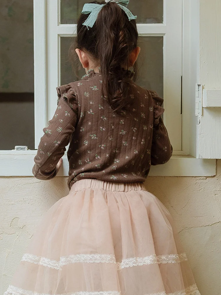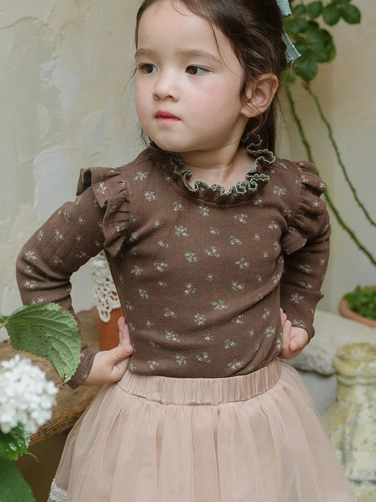【90-150cm】フリル花柄 インナー シャツ