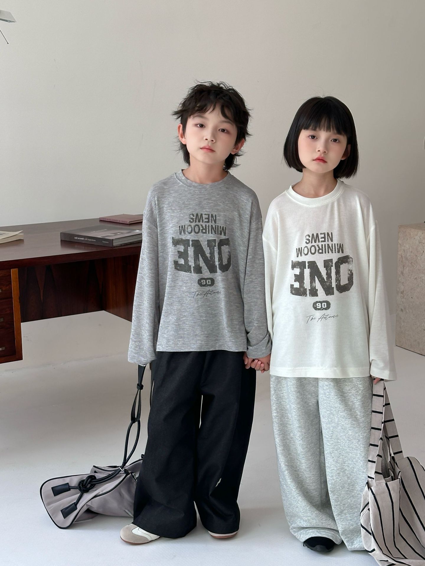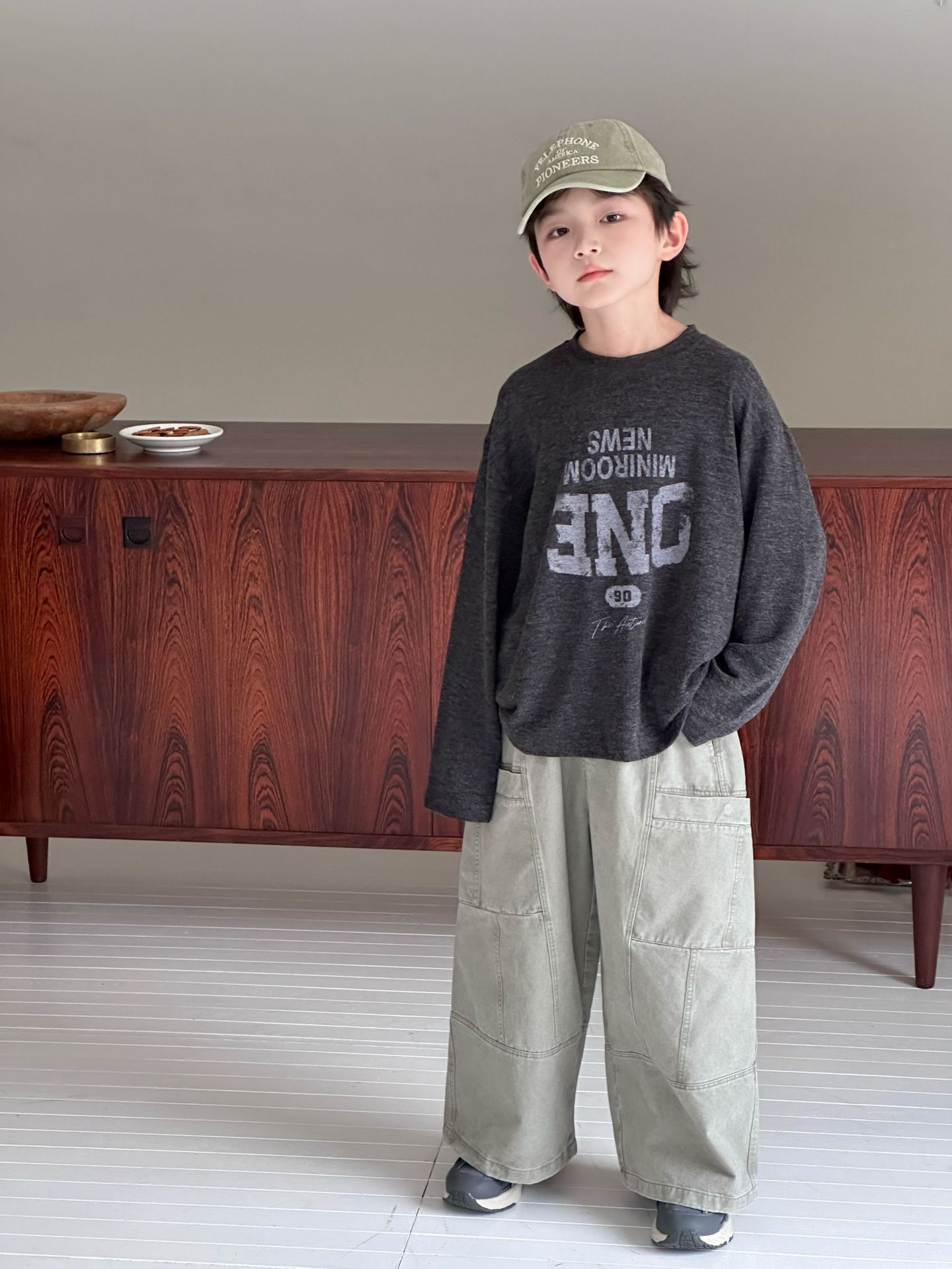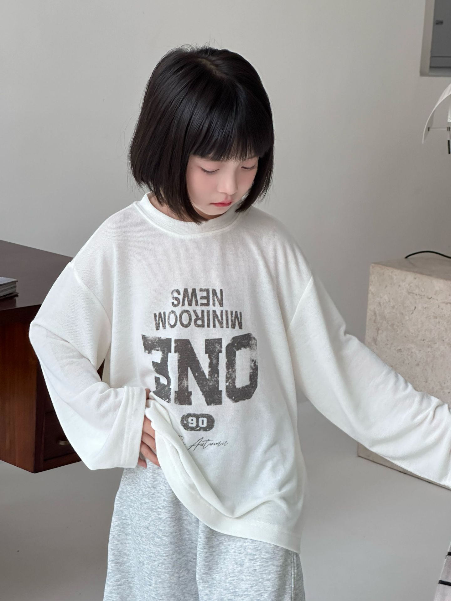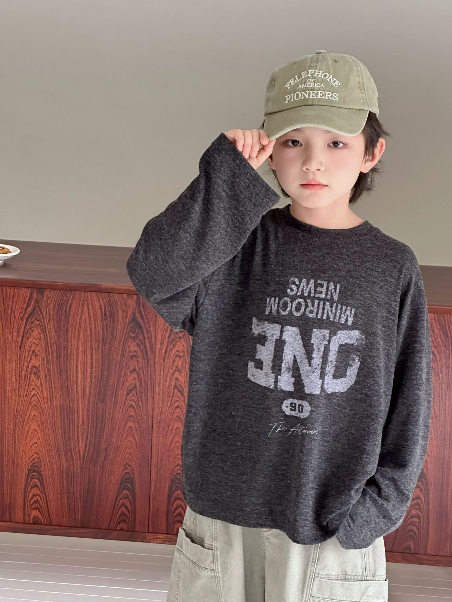【90-150cm】長袖Tシャツ 男女兼用 プリント クルーネック 柔らかい カジュアル トップス