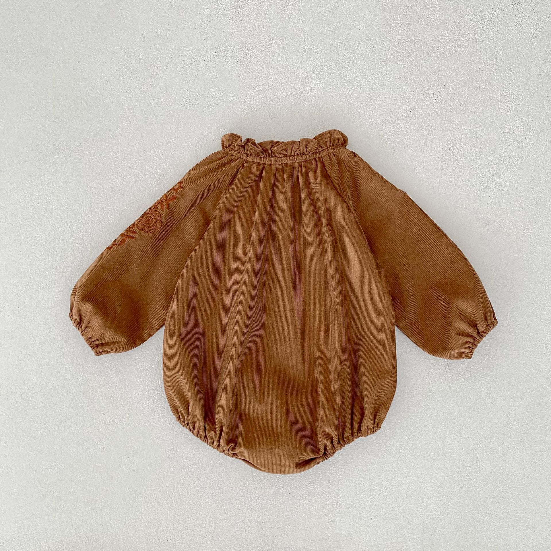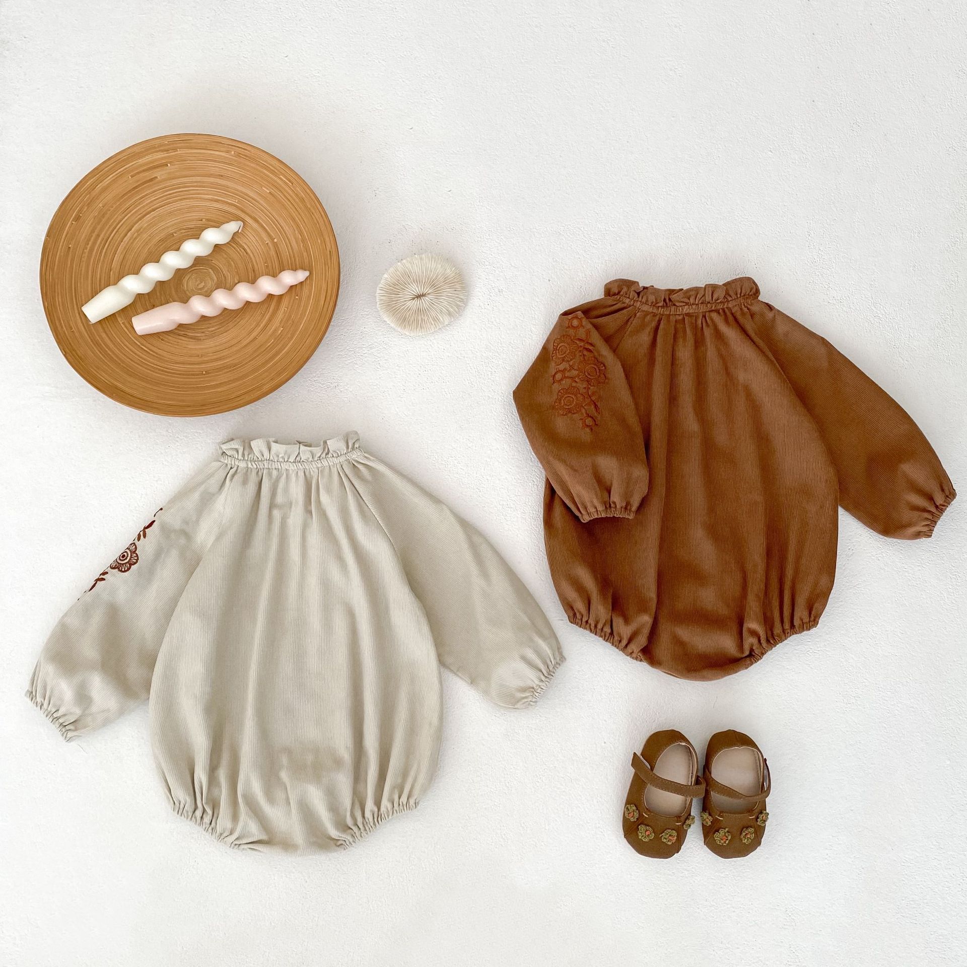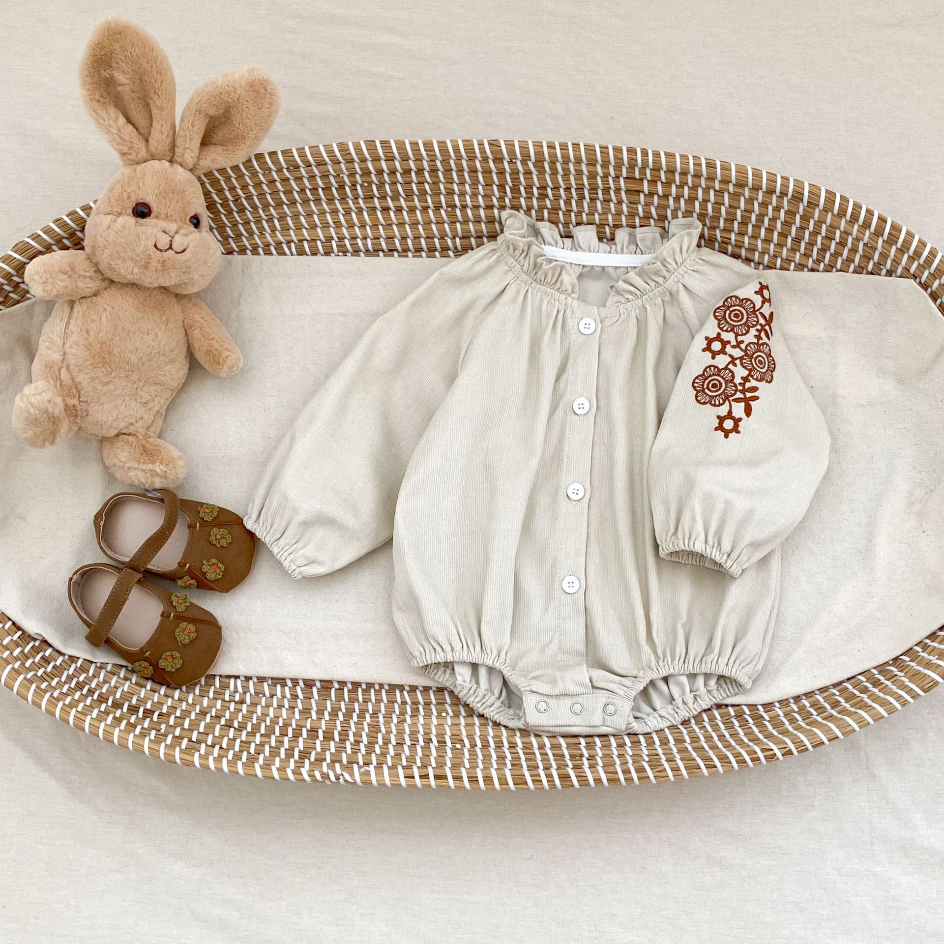 【66-90cm】ロンパース レトロ 刺繍 ナチュラル