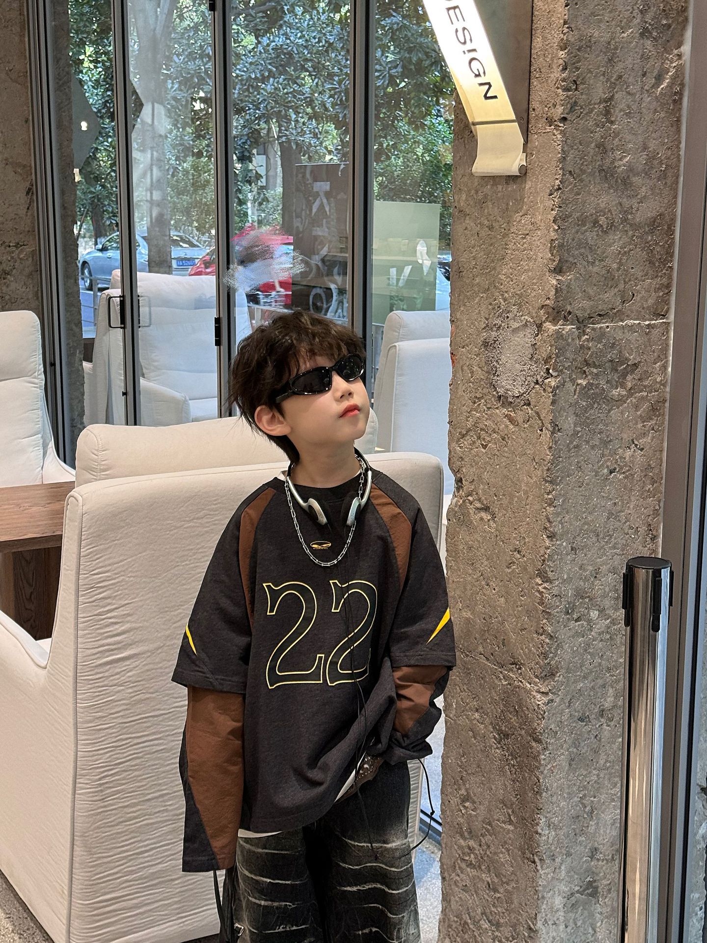 【90-160cm】レイヤード 数字柄 クール 長袖 Tシャツ