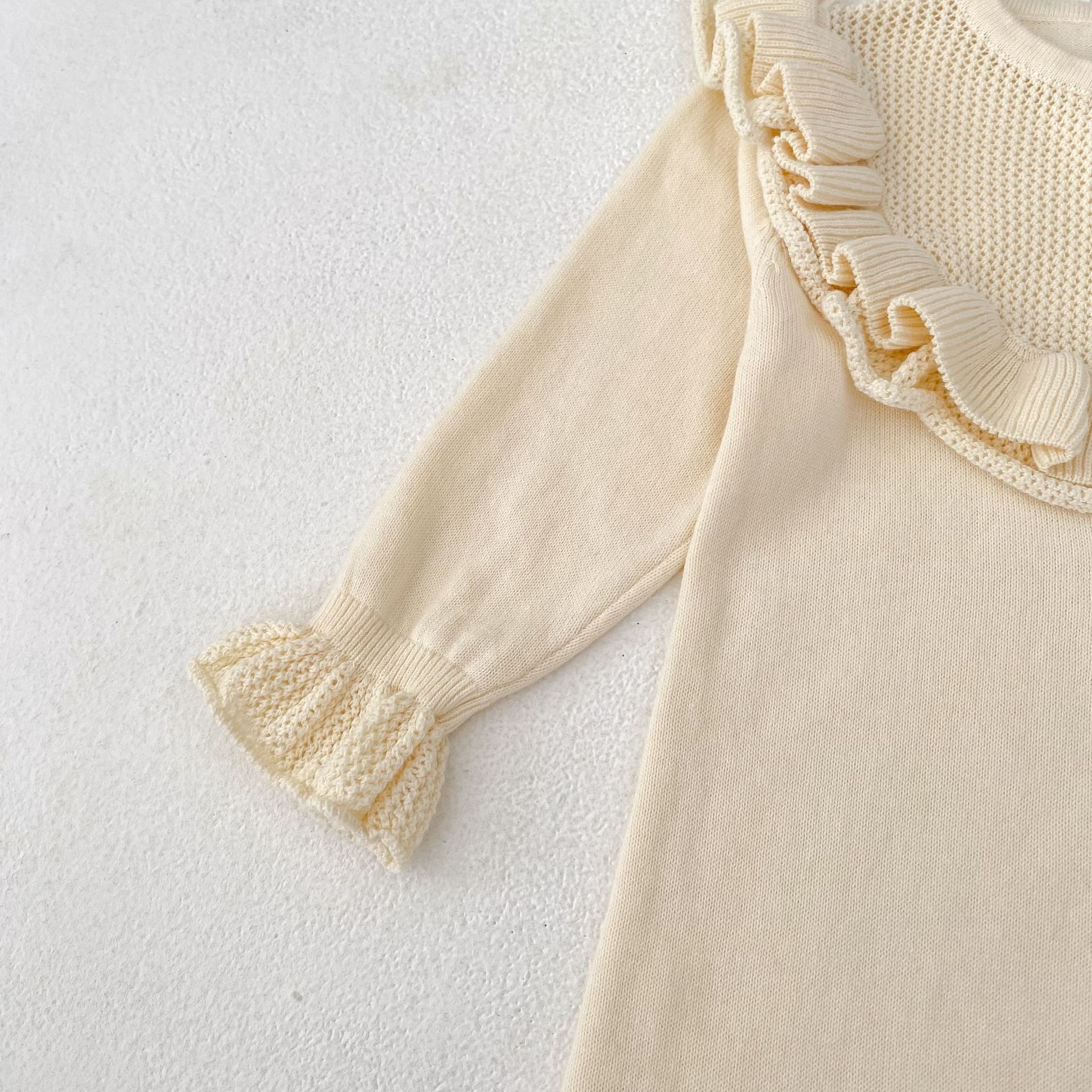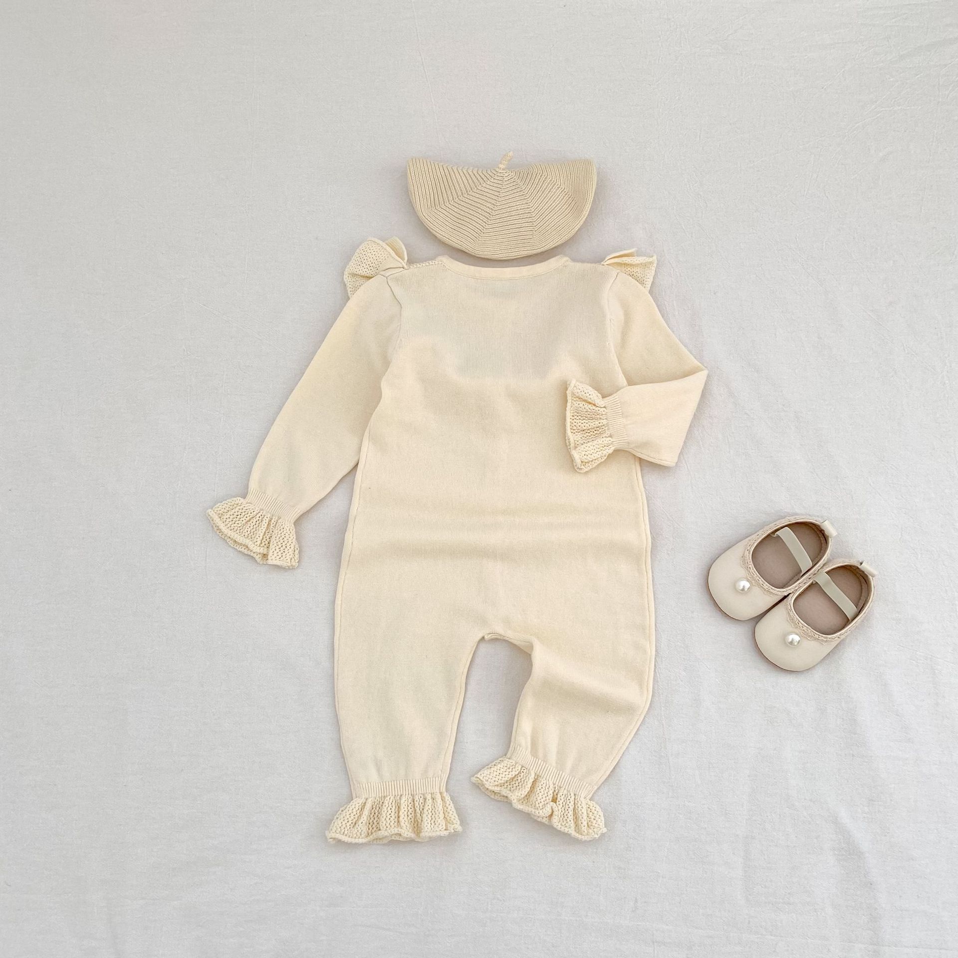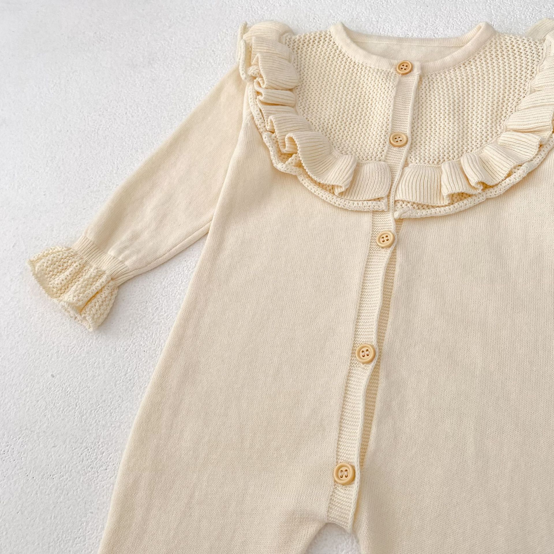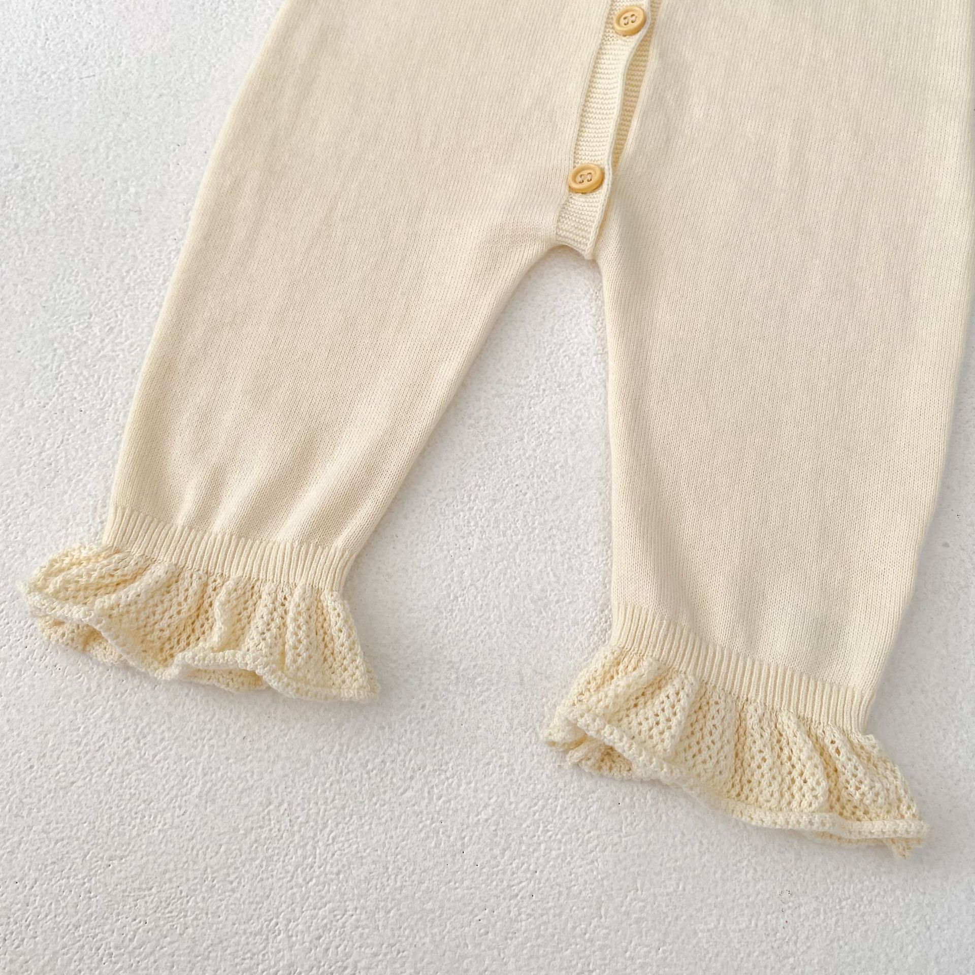 【66-90cm】ベビー ロンパース ニット 無地 フリルデザイン