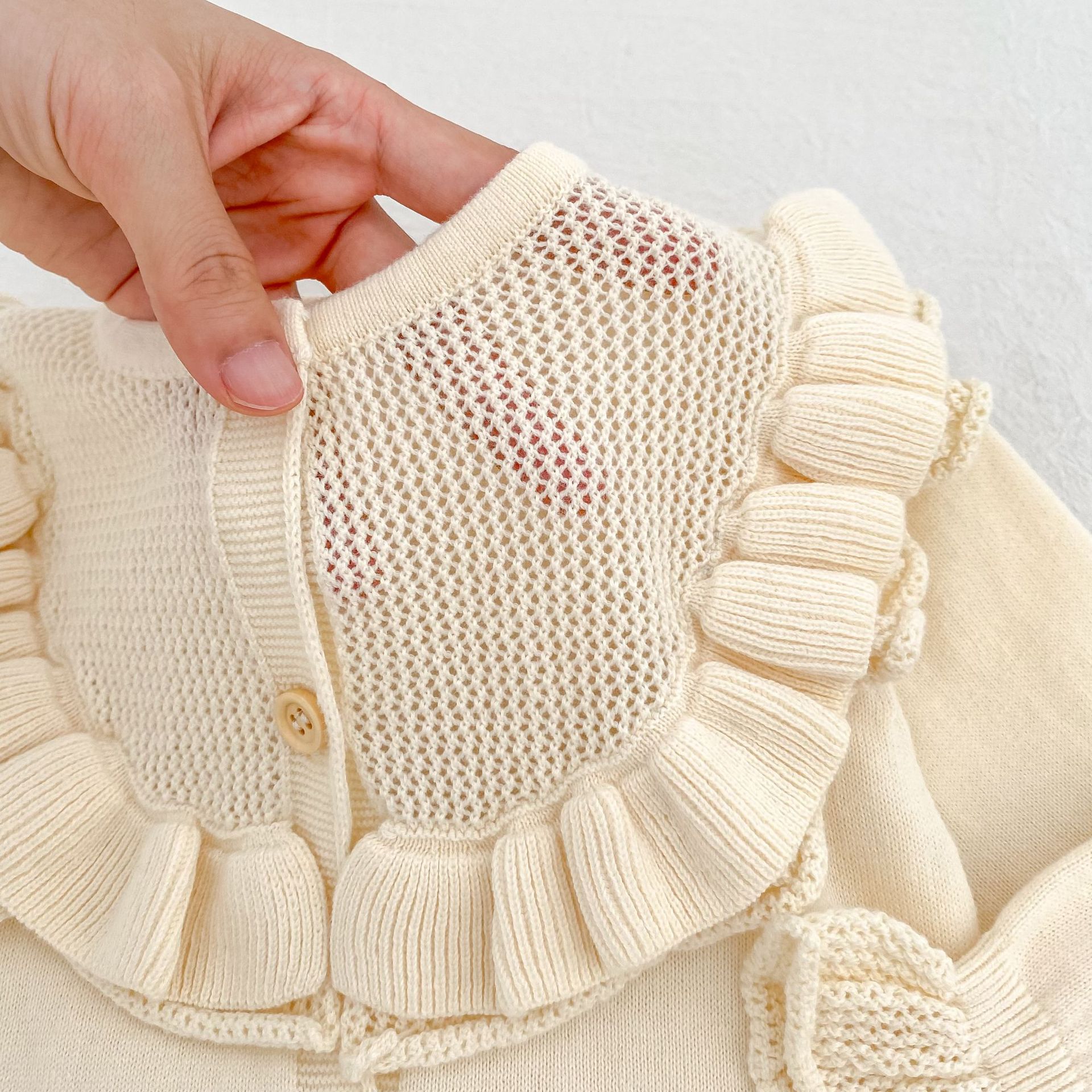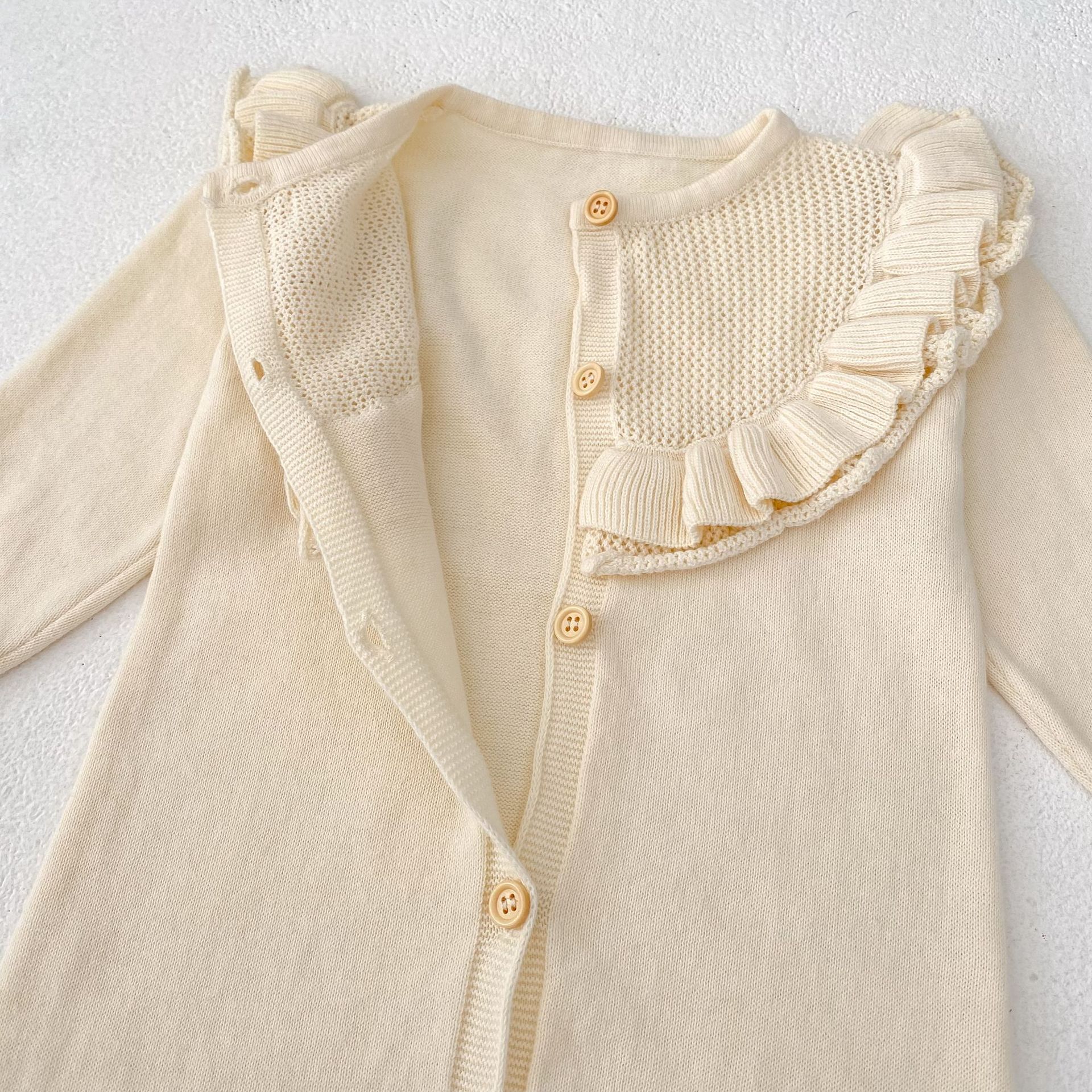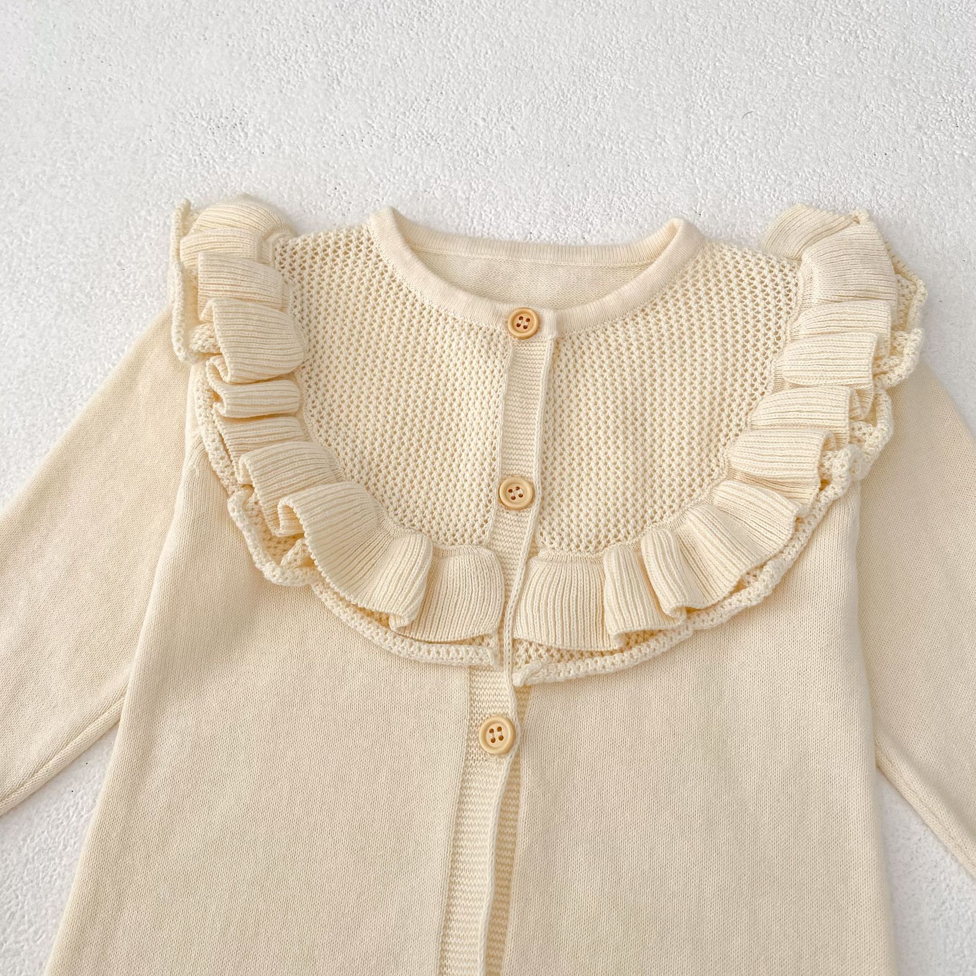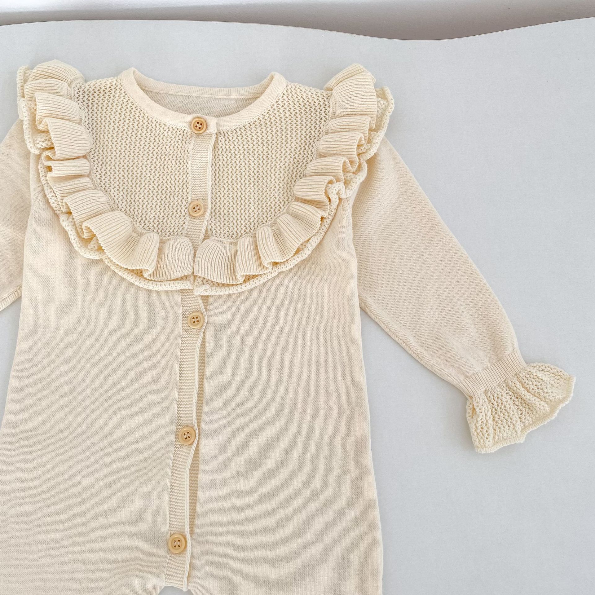 【66-90cm】ベビー ロンパース ニット 無地 フリルデザイン