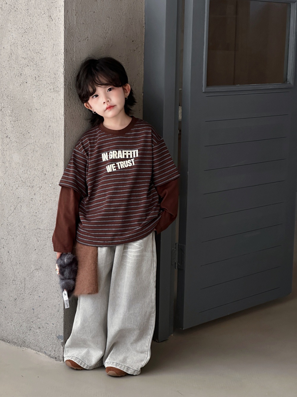 【90-150cm】レイヤード ボーダー柄 長袖 Tシャツ