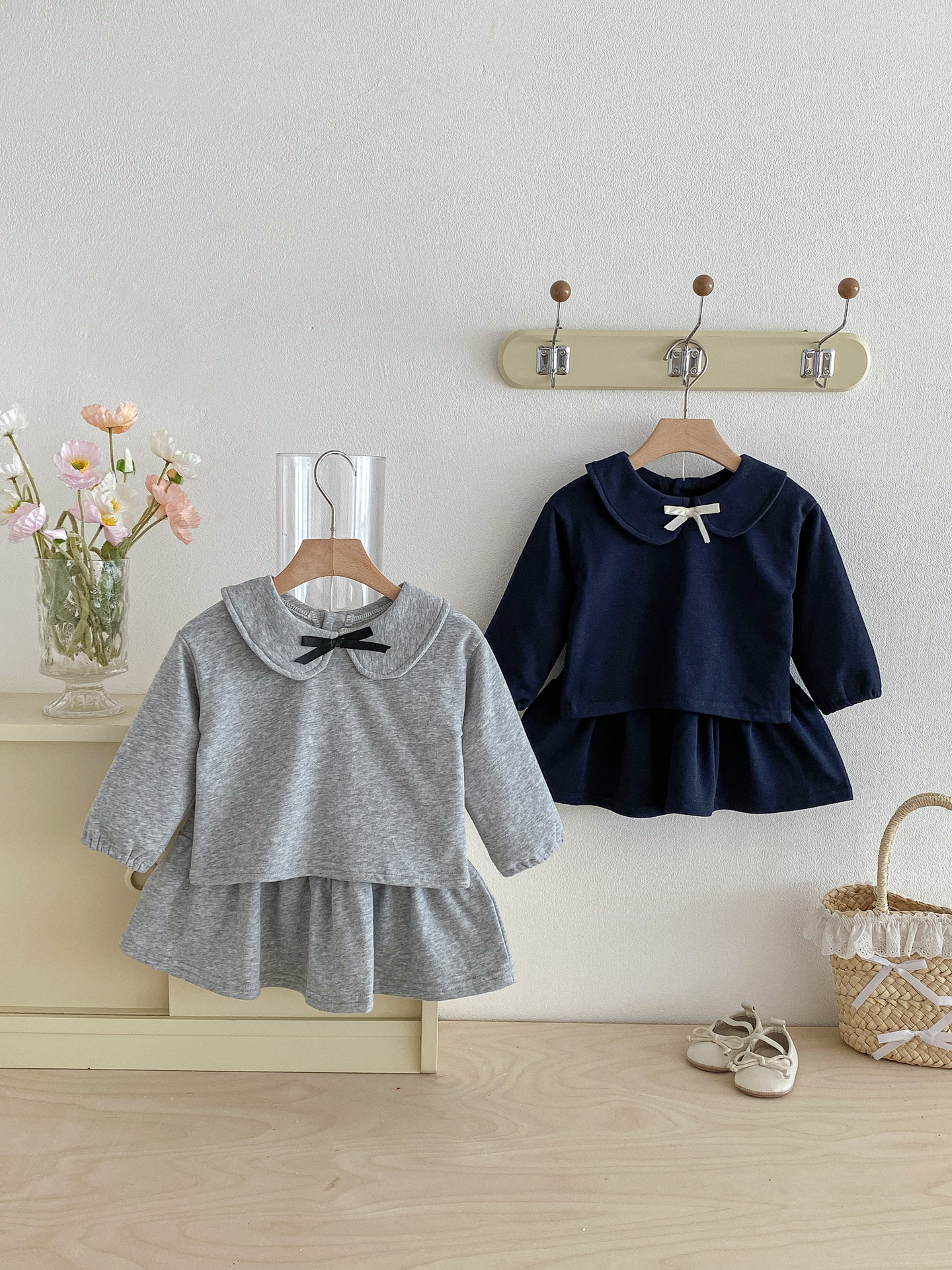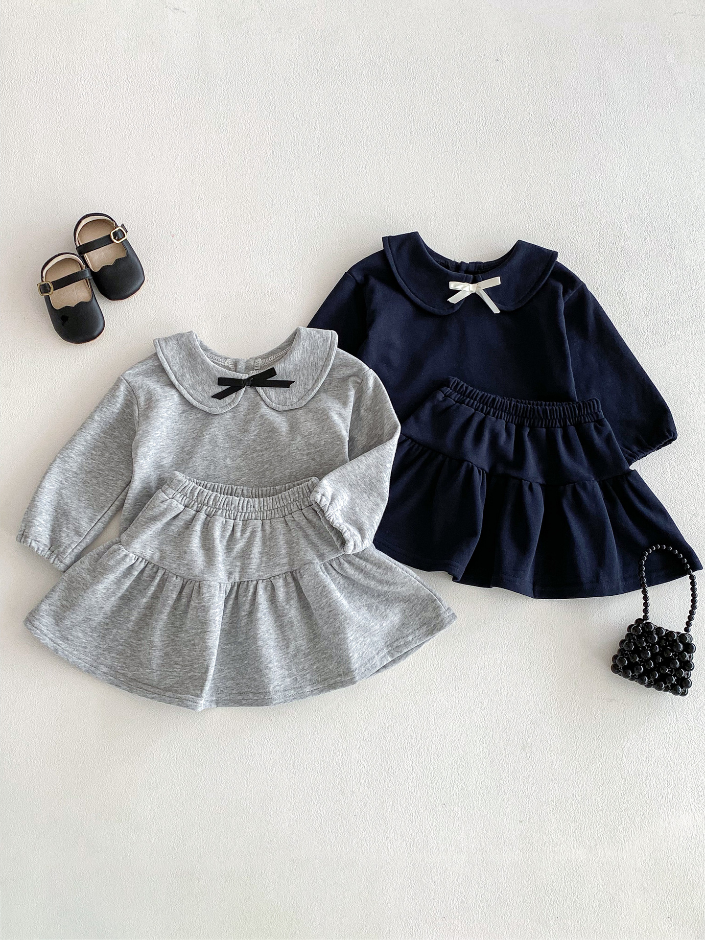 【73-110cm】セットアップ ベビー 女の子 トップス+スカート おしゃれ リボン付き