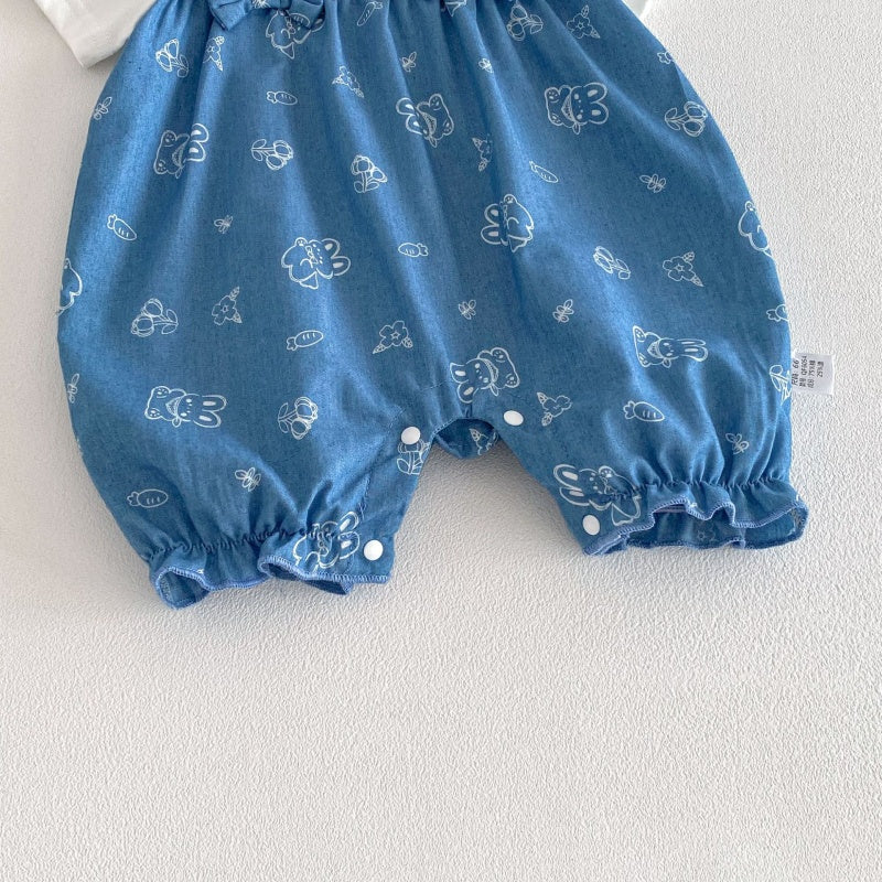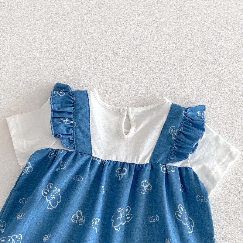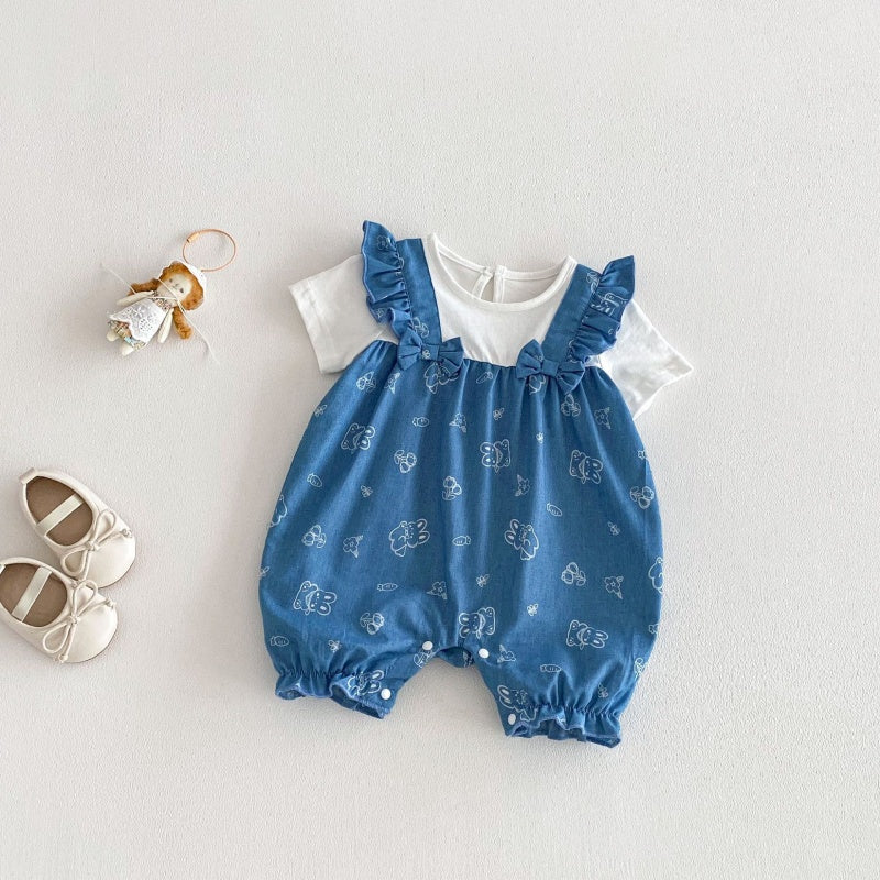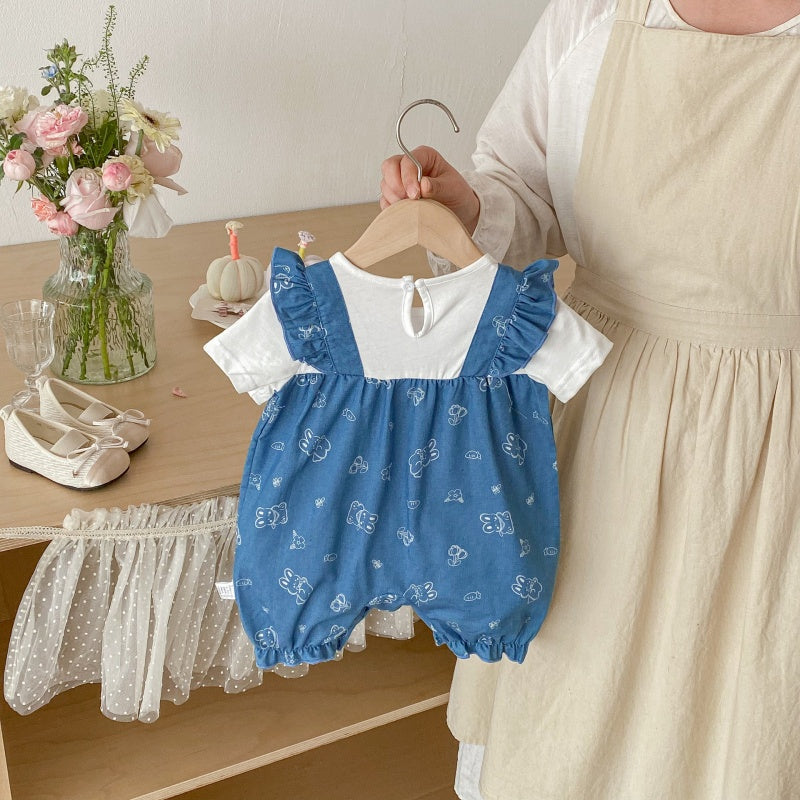 【66-90cm】カバーオール ベビー 女の子 デニム風 プリント切替