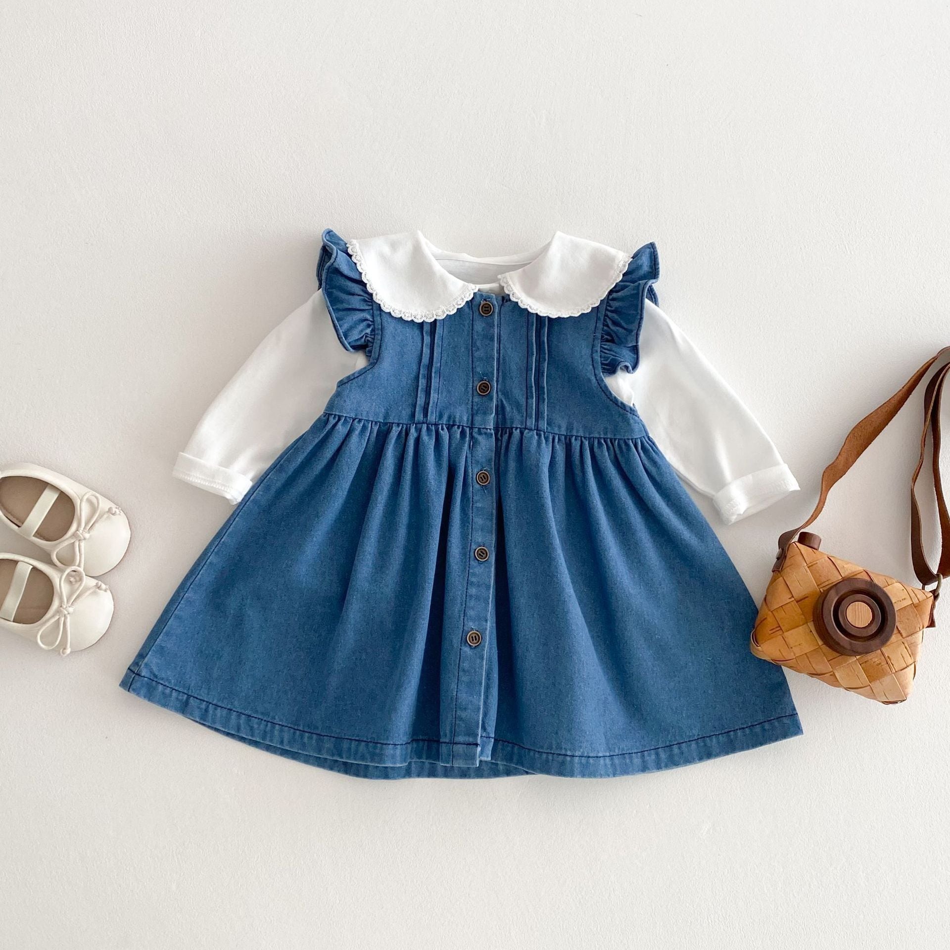 【73-120cm】ワンピース デニム フリル カジュアル ディリー