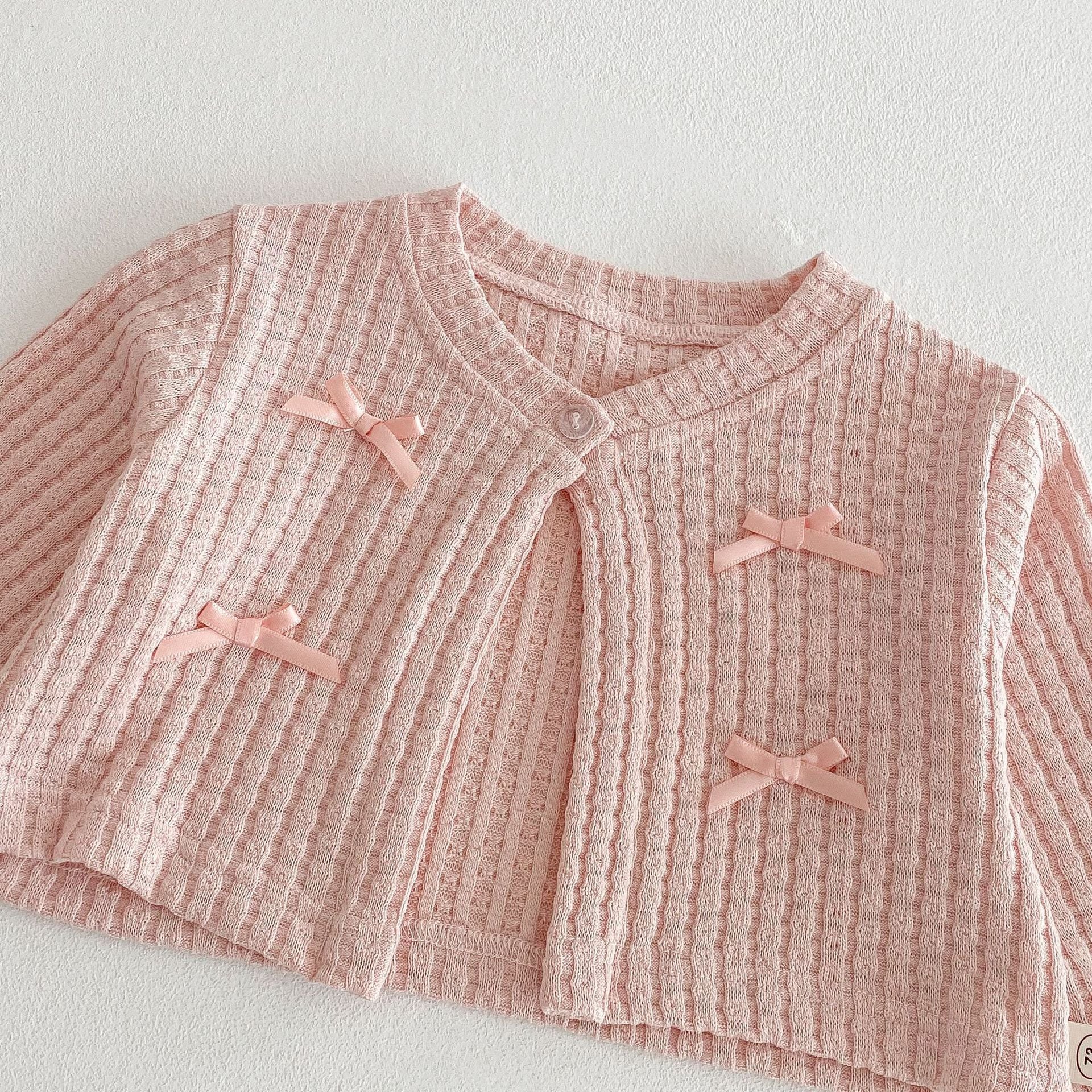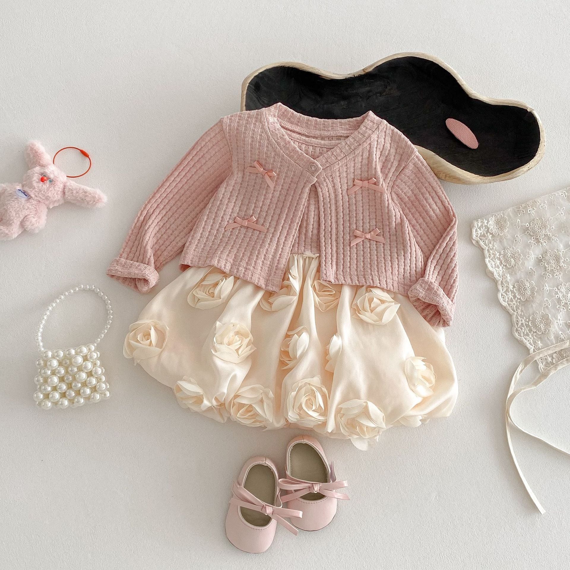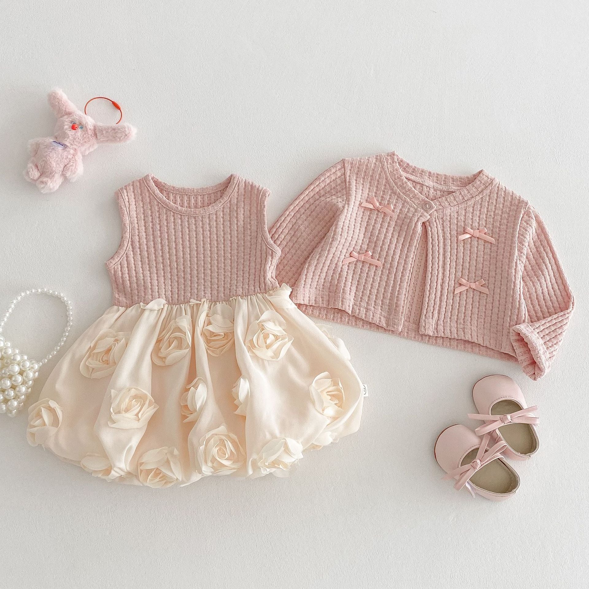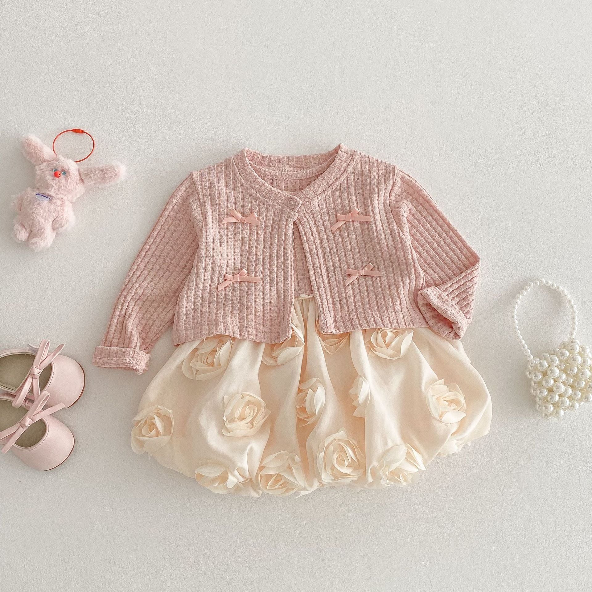【73-120cm】カーディガンORワンピース リボン付き クリーム ローズ ベビー服