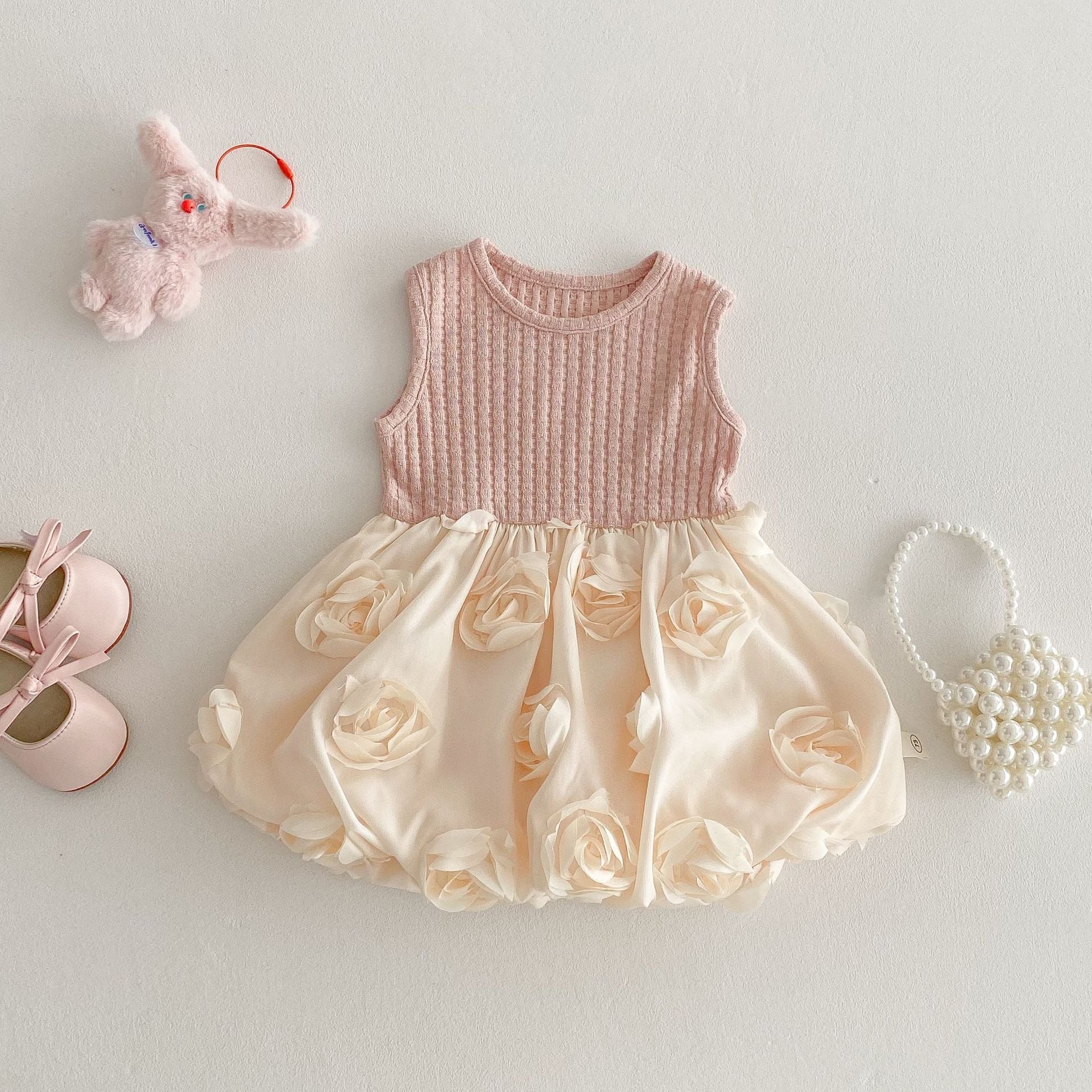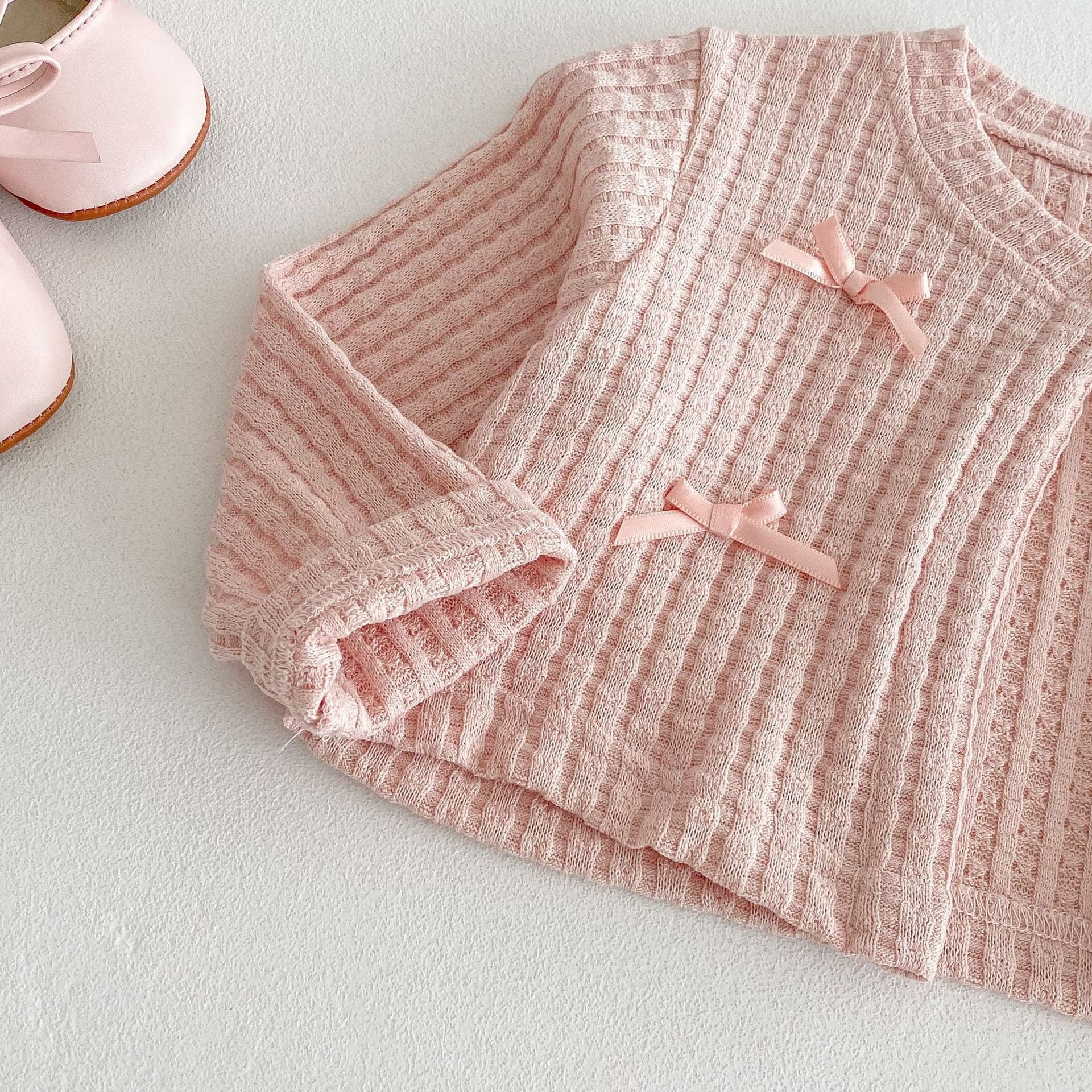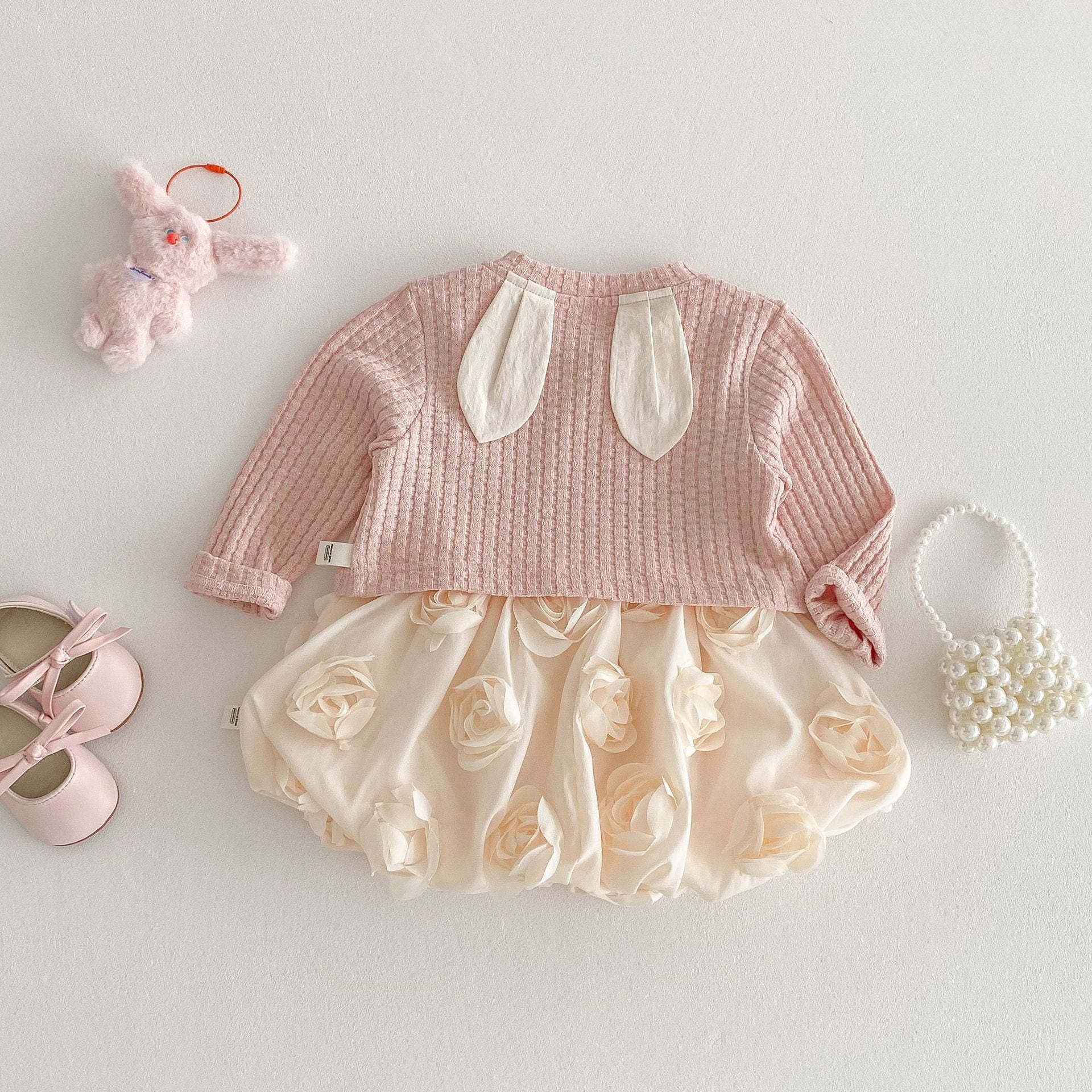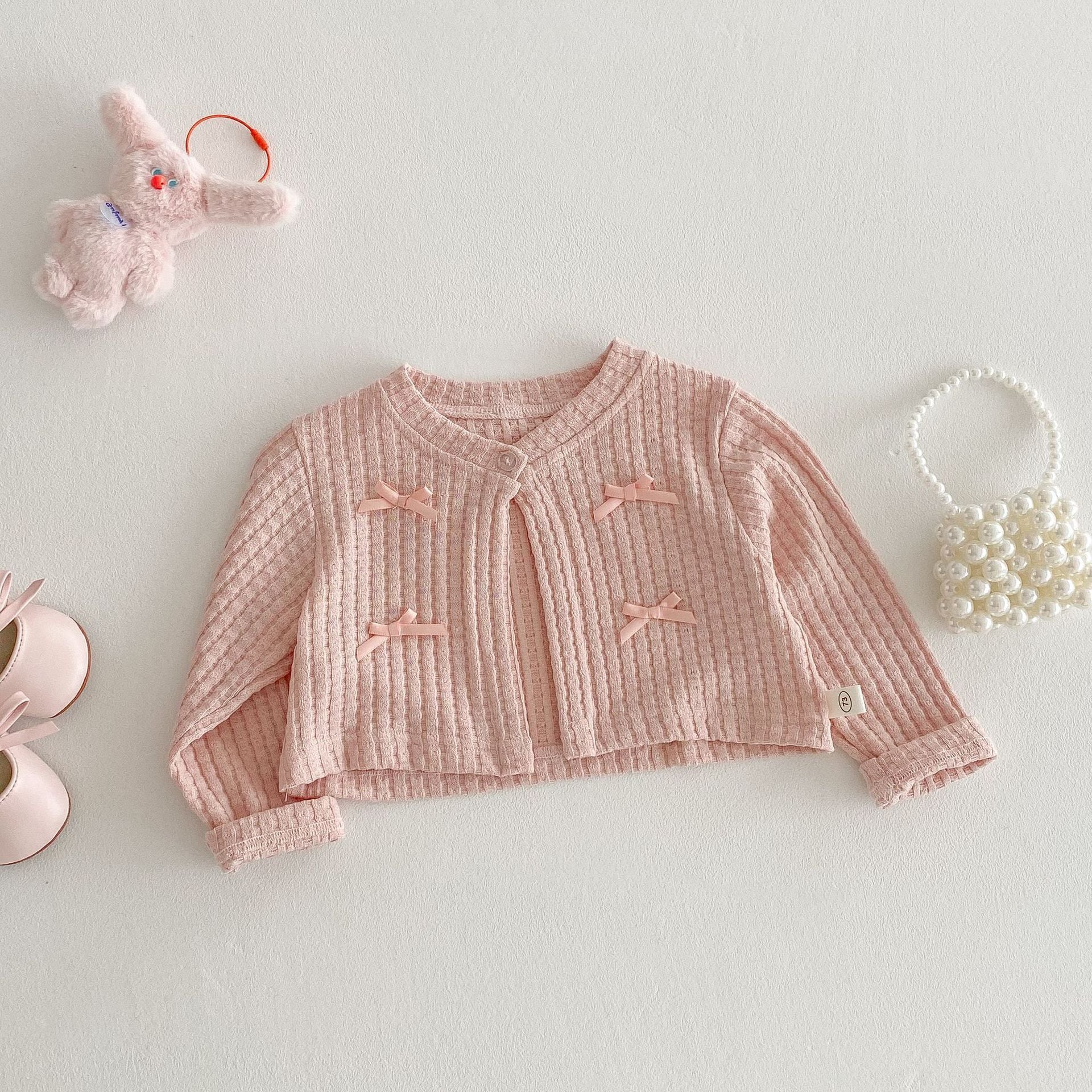 【73-120cm】カーディガンORワンピース リボン付き クリーム ローズ ベビー服