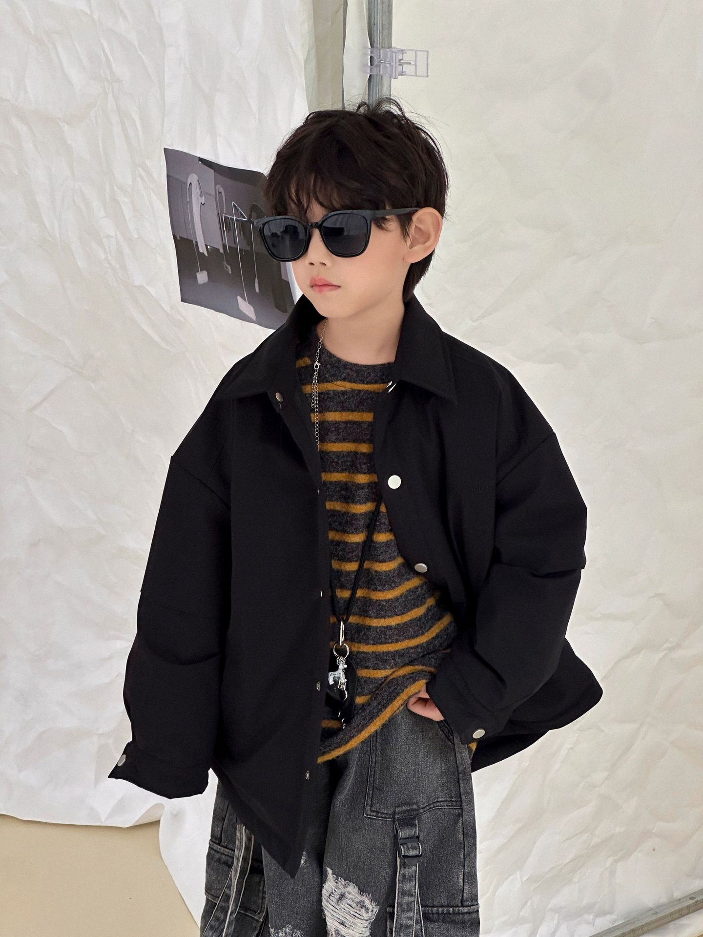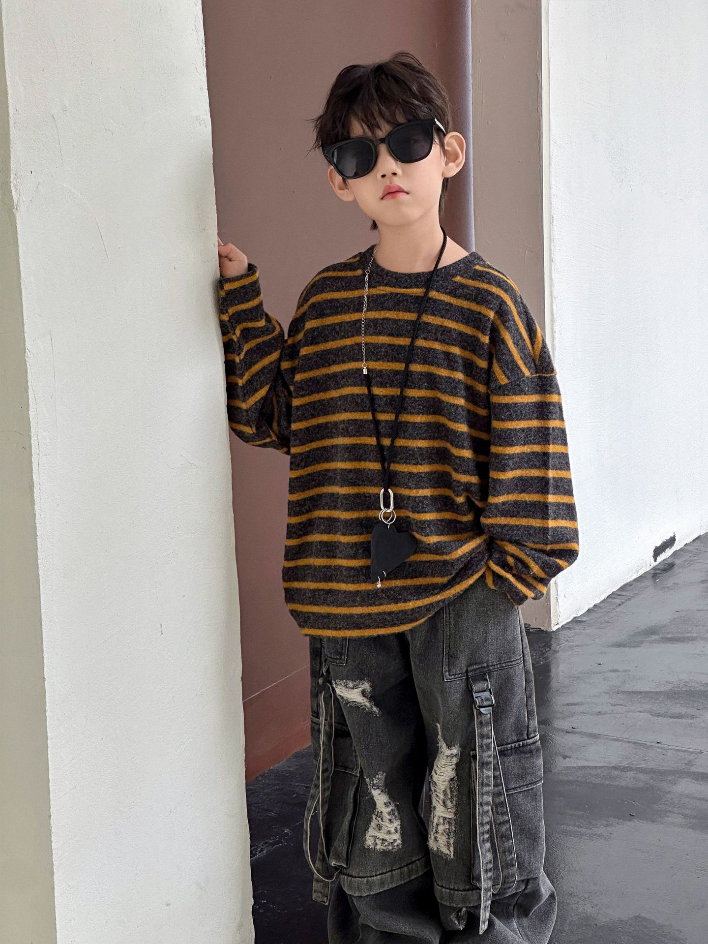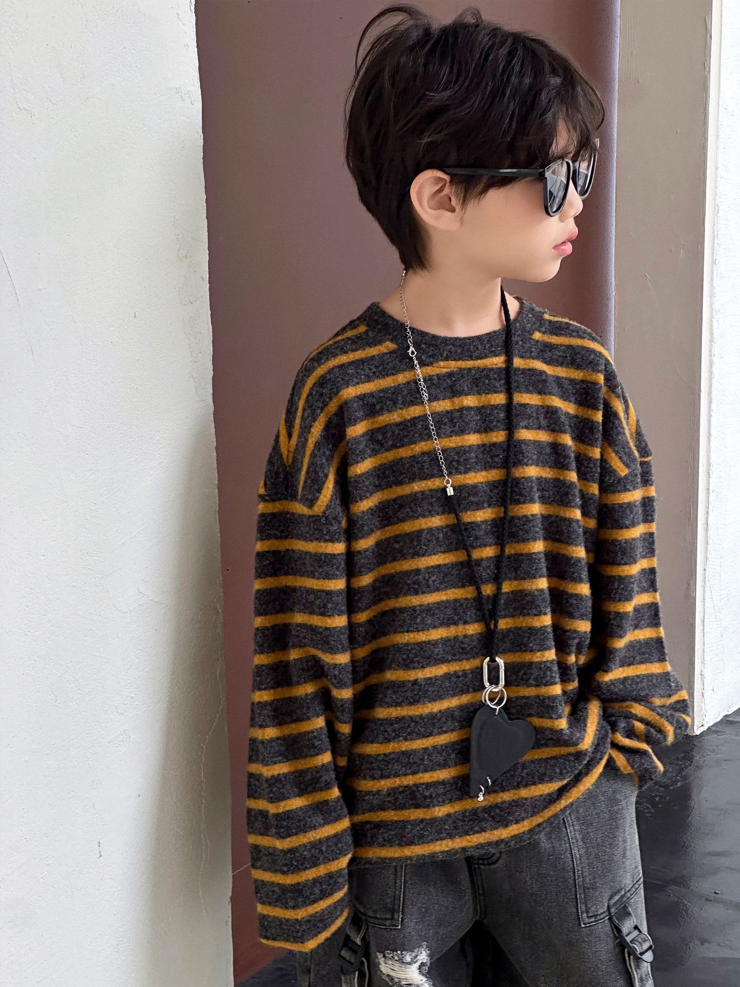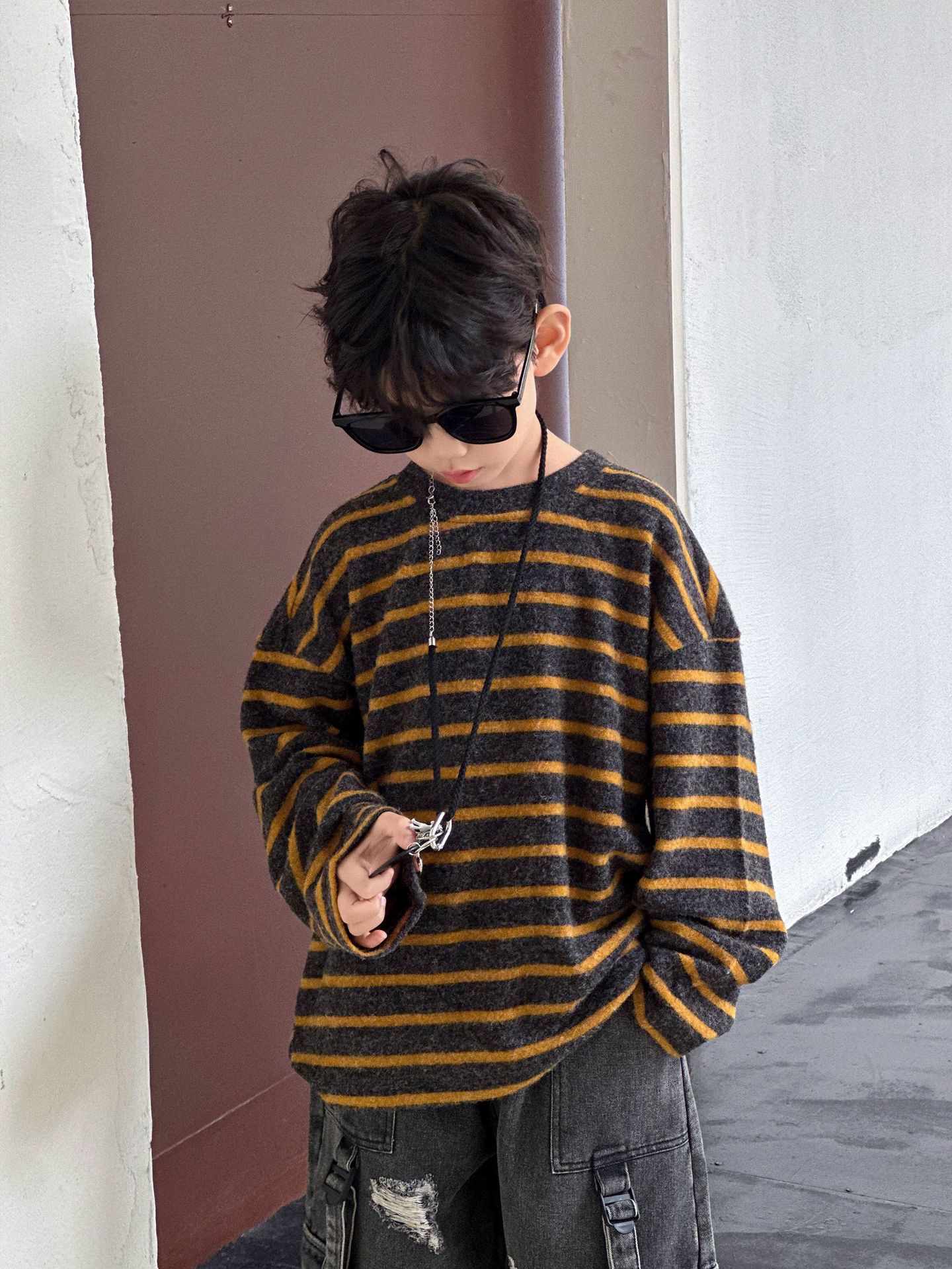 【100-160cm】 ボーダー柄 快適 トップス