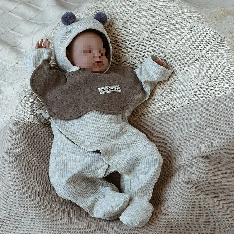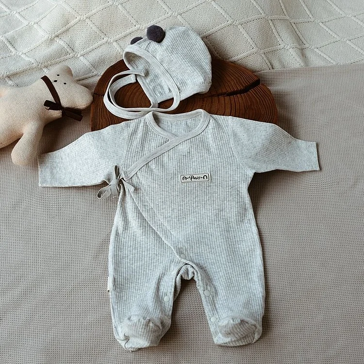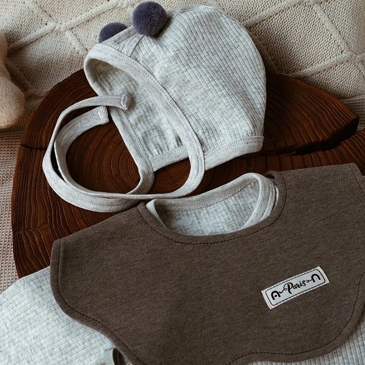 【59-80cm】 帽子付き 涎掛け ロンパース 3点セット